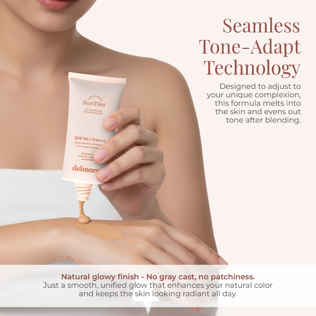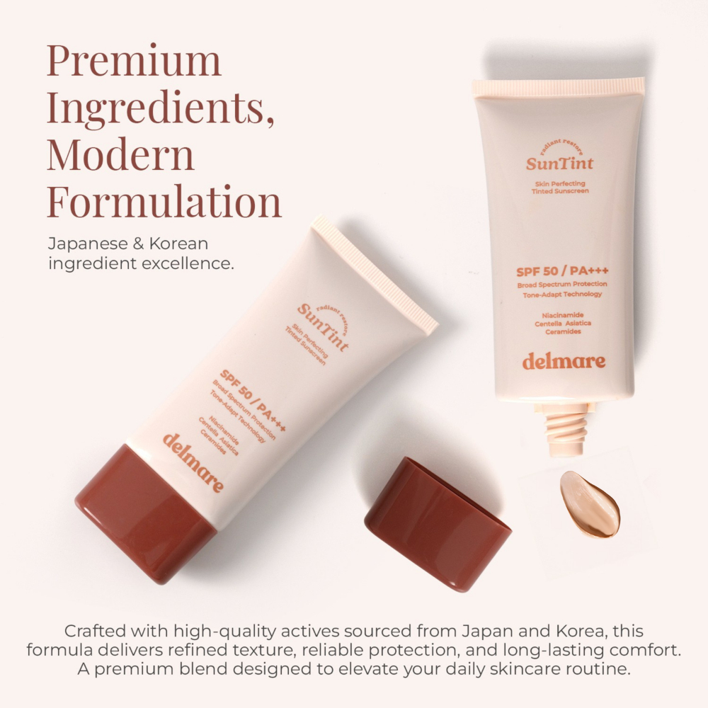 Delmare Radiant Restore Sun Tint: Tinted Sunscreen with Tone Adapt Technology SPF 50