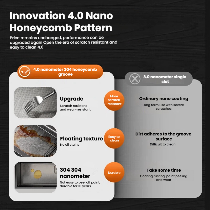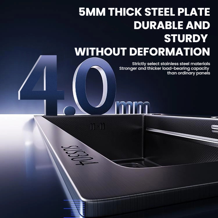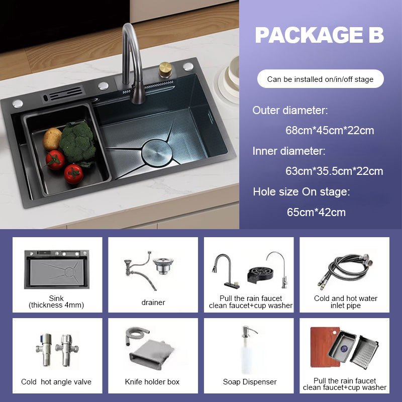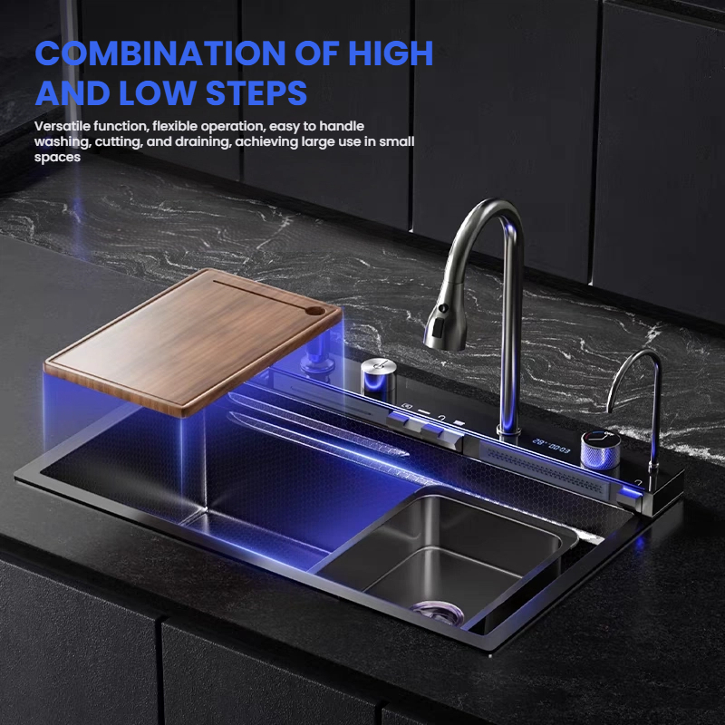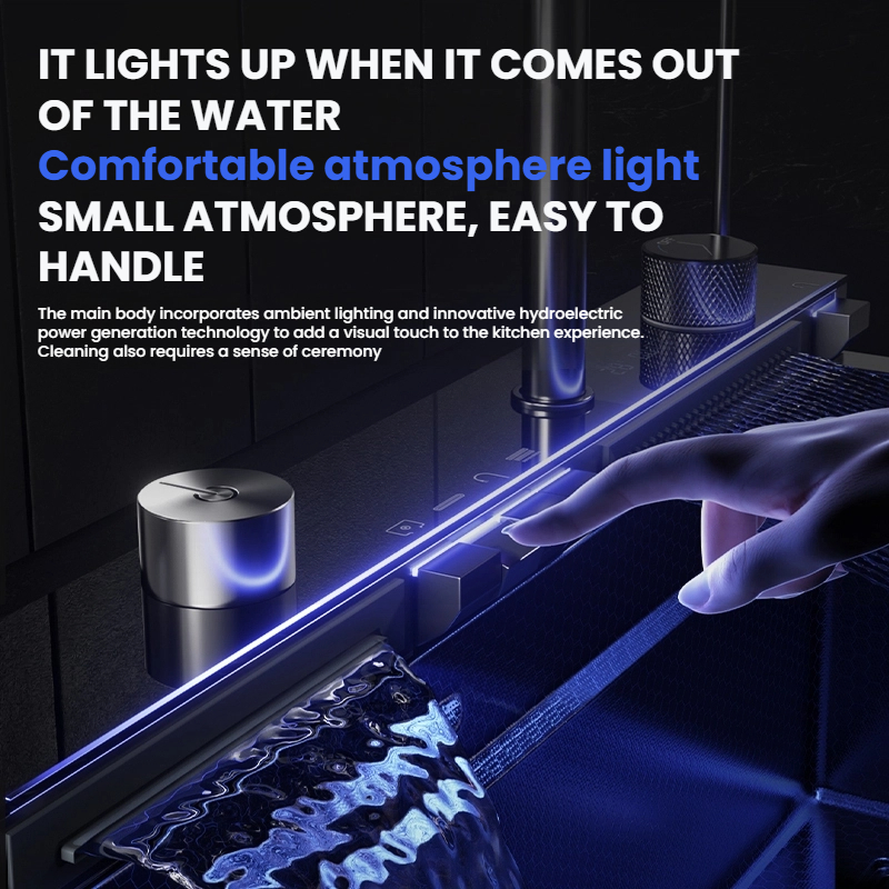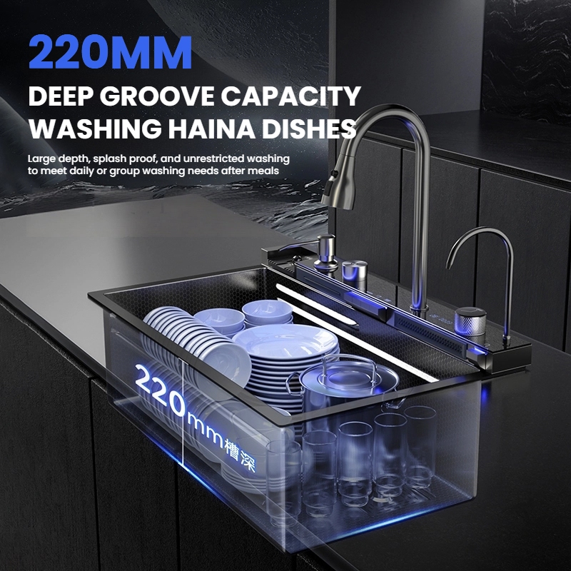 SUS304 Stainless Steel Kitchen Sink 4mm Nano Honeycomb Single Slot Multi-Functional Digital Display Flying Rain Faucet Sink Set