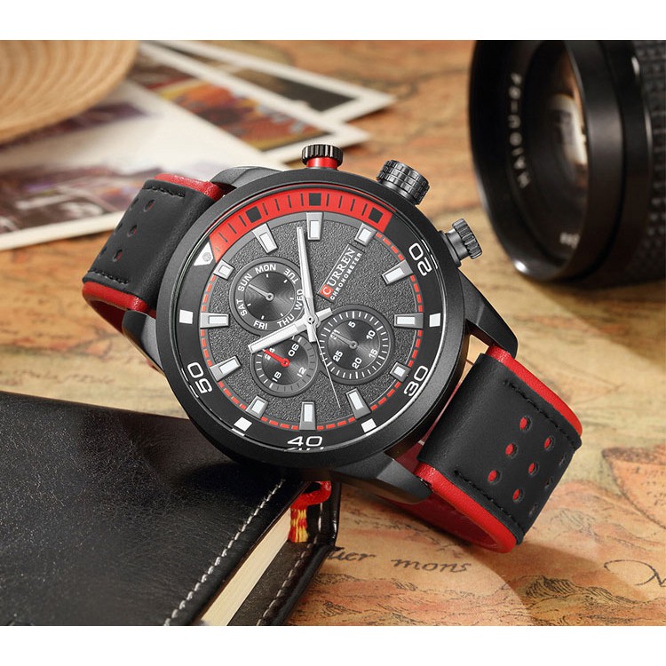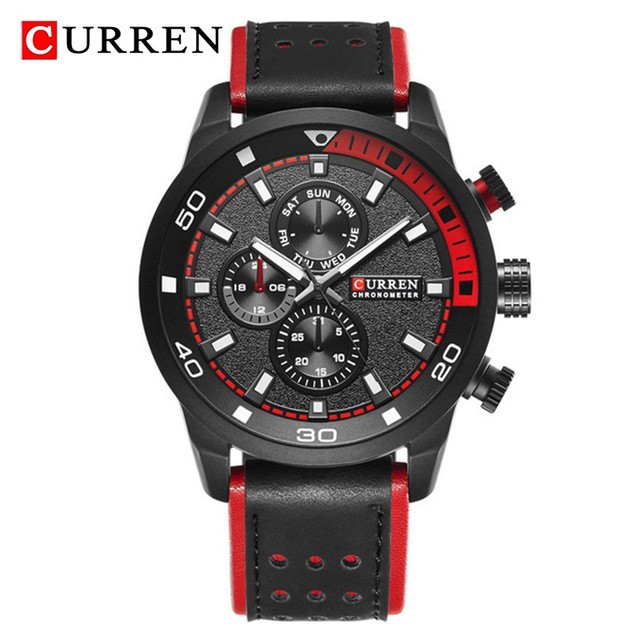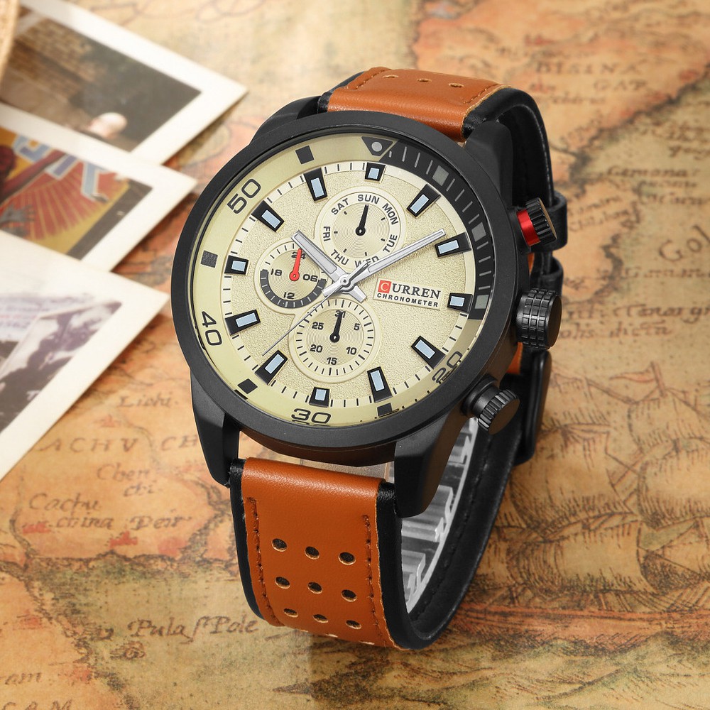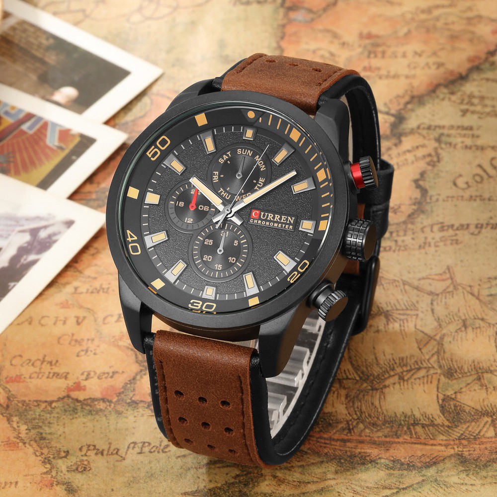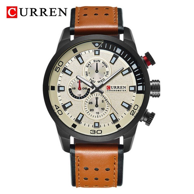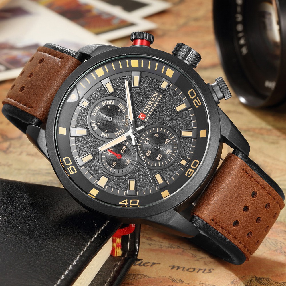 CURREN CURREN Brand Men's Watch Top Luxury Chronograph Leather Strap Quartz Waterproof Sports Watch