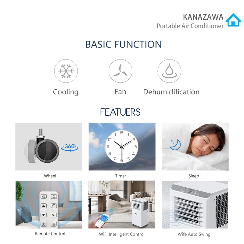 KANAZAWA 1.0HP Portable Air Conditioner Touch Screen Aircon With WiFi Intelligent Control