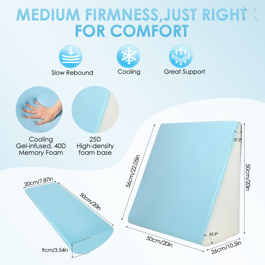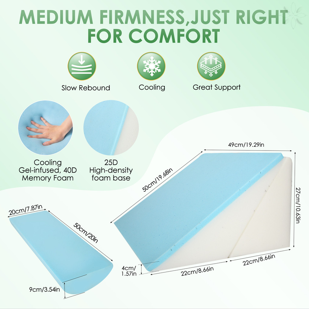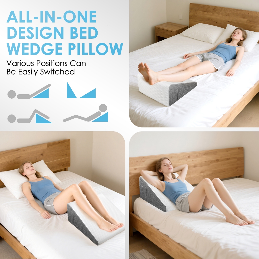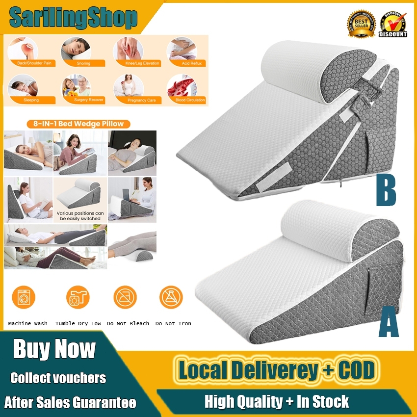 ⭐️Local Delivery⭐️ Gel Memory Foam Bed Wedge Pillow For Acid Reflux, Snoring Relief, Sleep Apnea Support, 12Inch Leg Elevation, Back Support For Sitting Up, Sleeping Readin