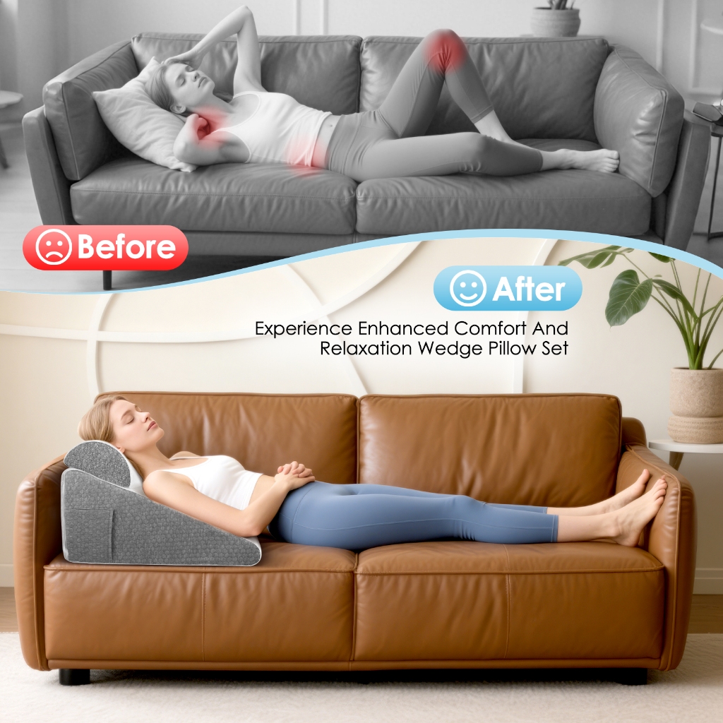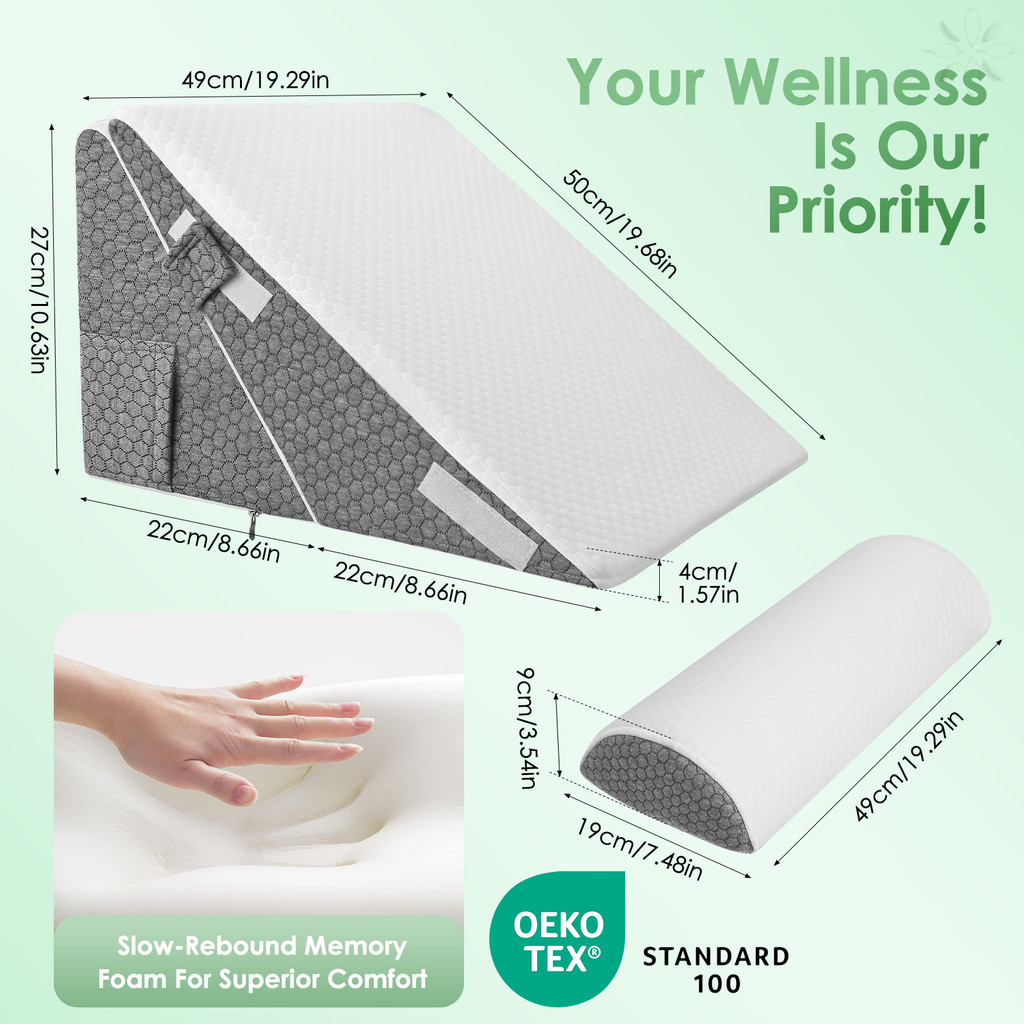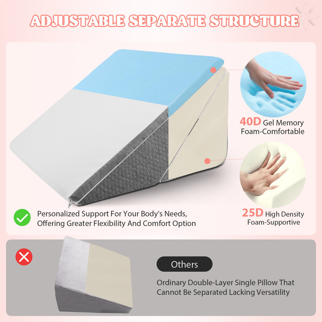 ⭐️Local Delivery⭐️ Gel Memory Foam Bed Wedge Pillow For Acid Reflux, Snoring Relief, Sleep Apnea Support, 12Inch Leg Elevation, Back Support For Sitting Up, Sleeping Readin