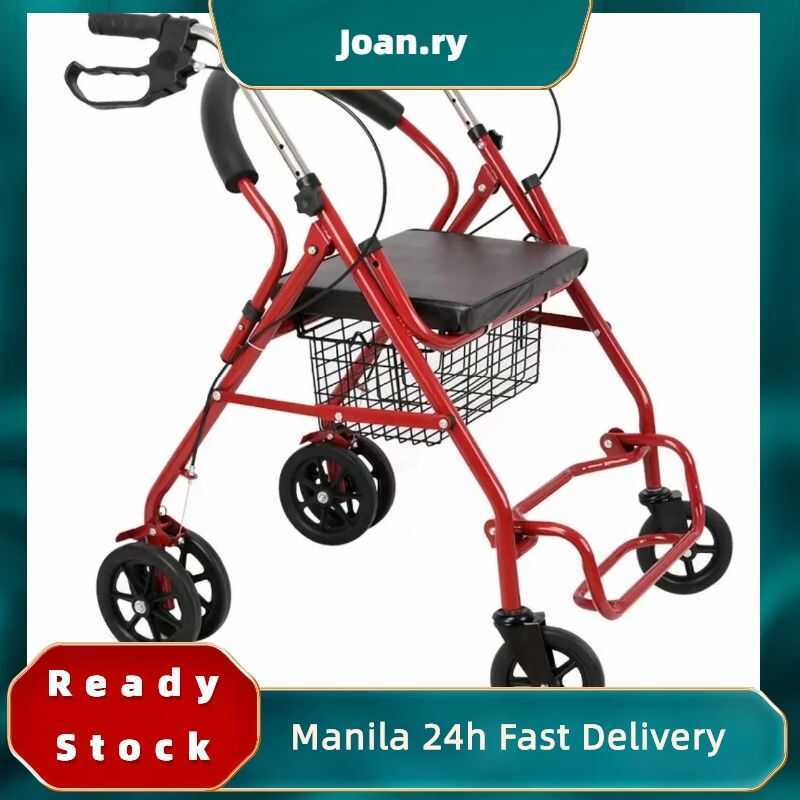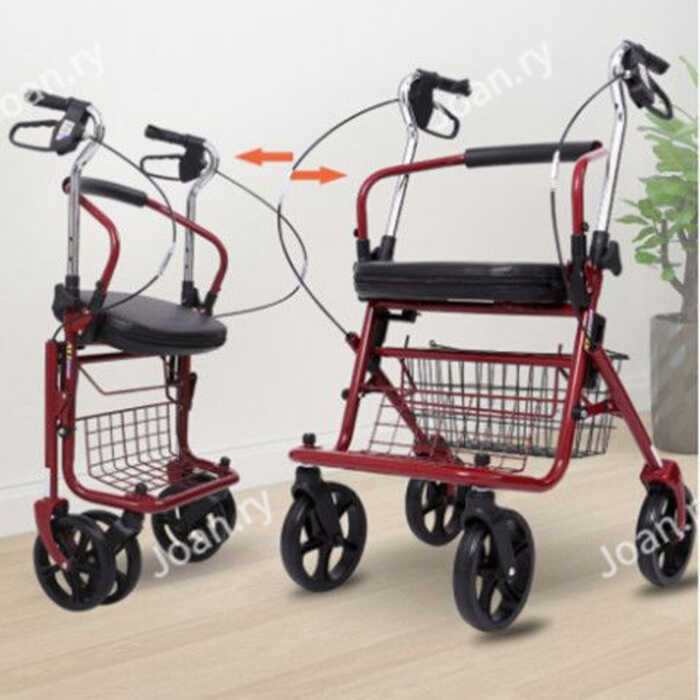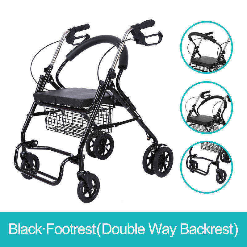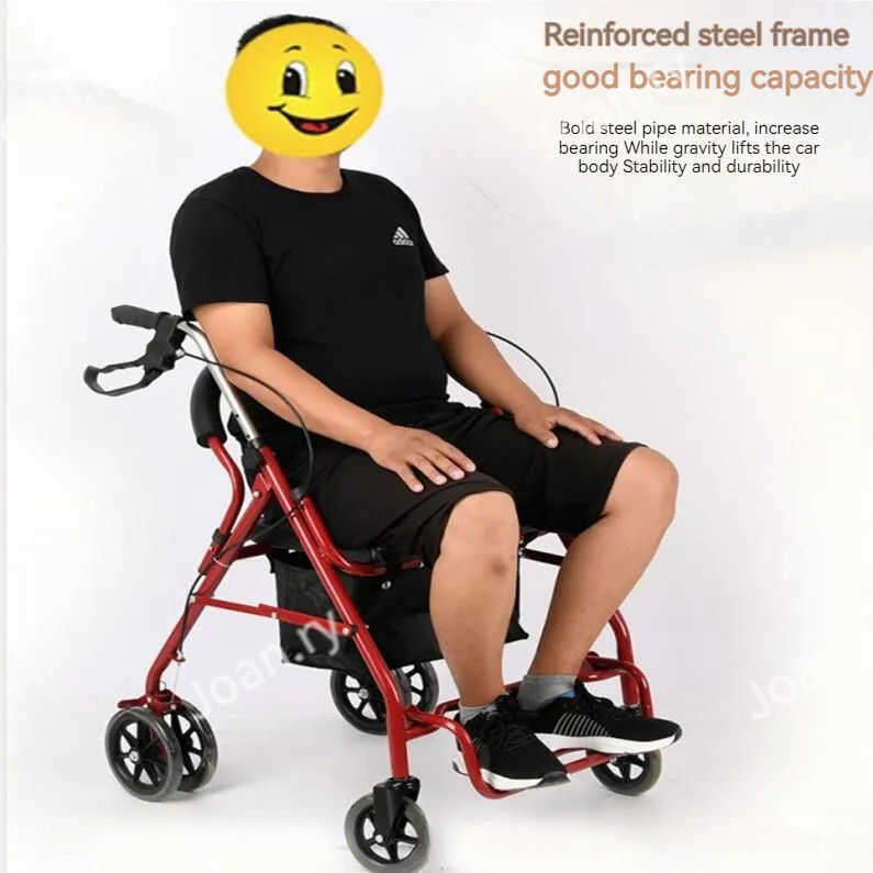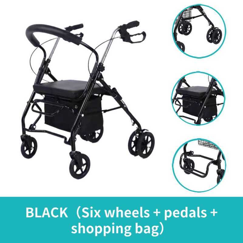 Elderly trolley can push and sit elderly leisure four-wheel shopping cart with chair walker