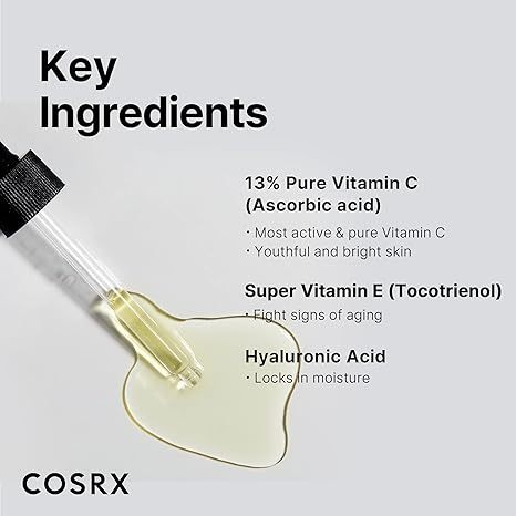 COSRX Pure Vitamin C 13% Serum with Vitamin E & Hyaluronic Acid, Hydrating Facial Serum for Fine Lines, Uneven Skin Tone & Dull Skin, 0.67fl.oz/20ml, Korean Skin Care