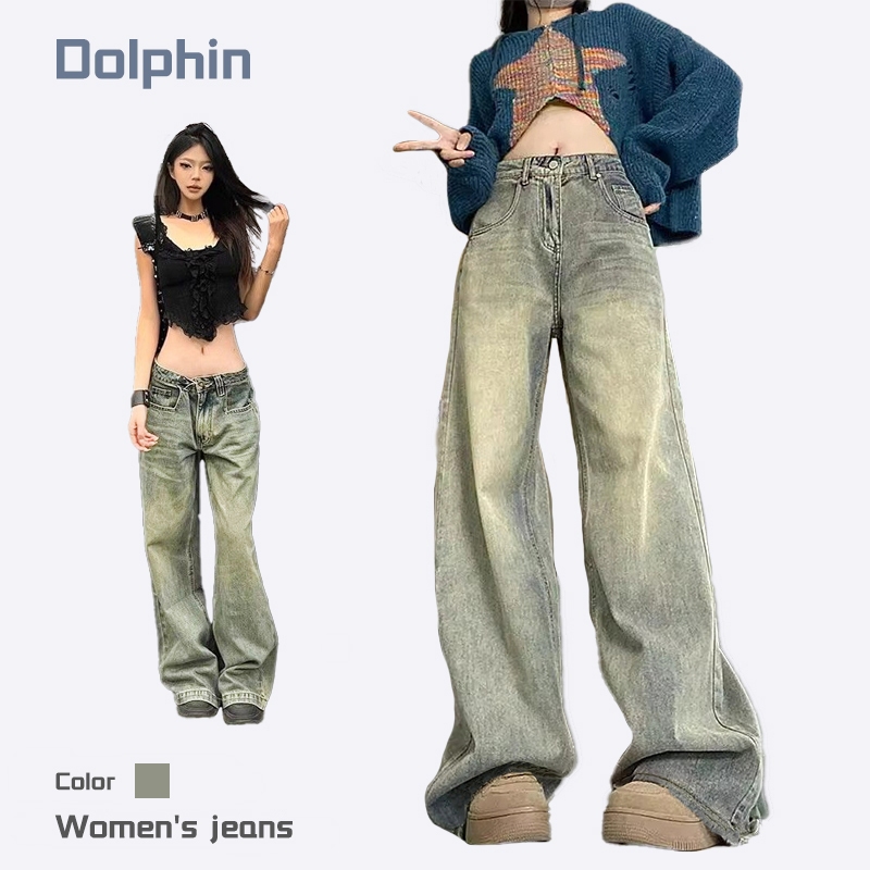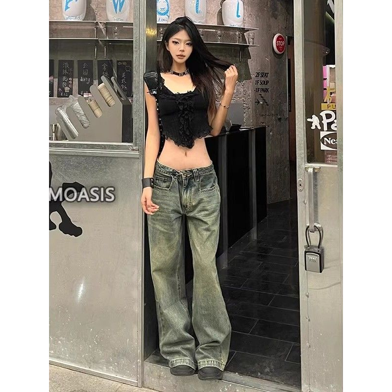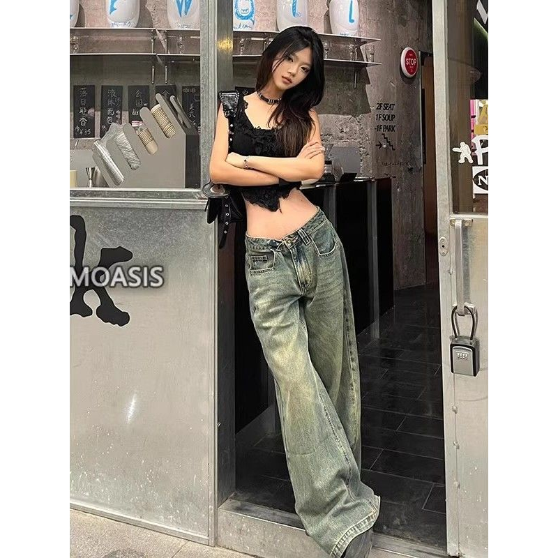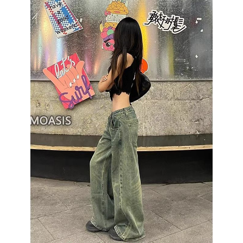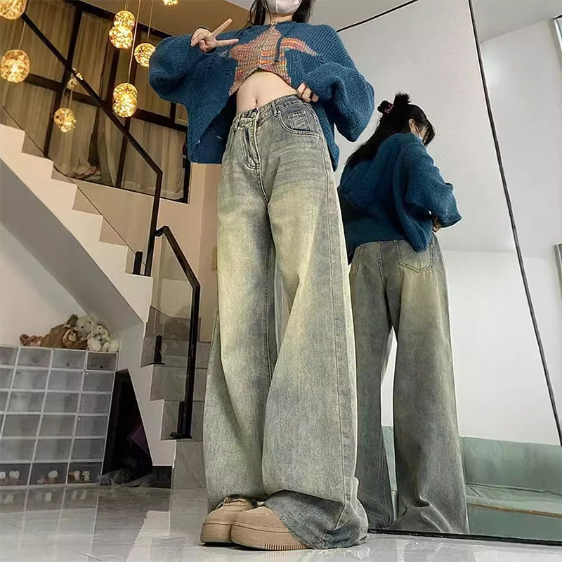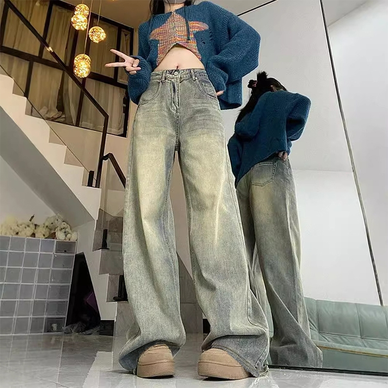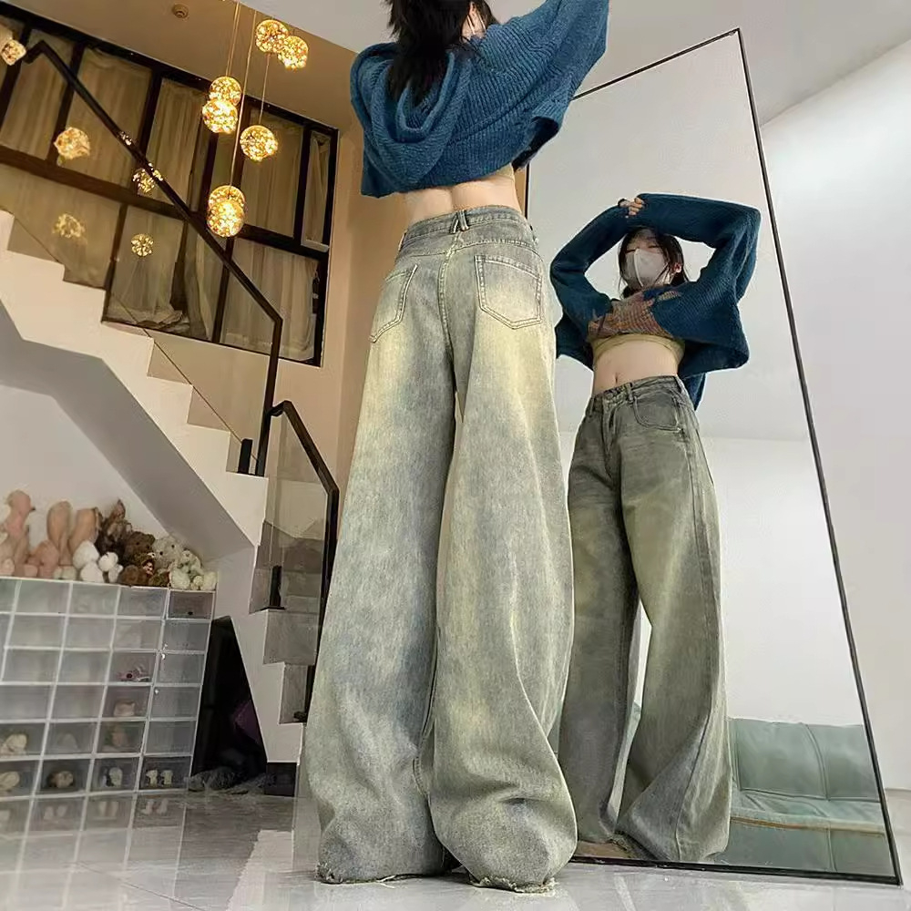 MPJ 2025 Vintage Washed Jeans - High Waisted Loose Straight Leg Retro Pants, American Style
