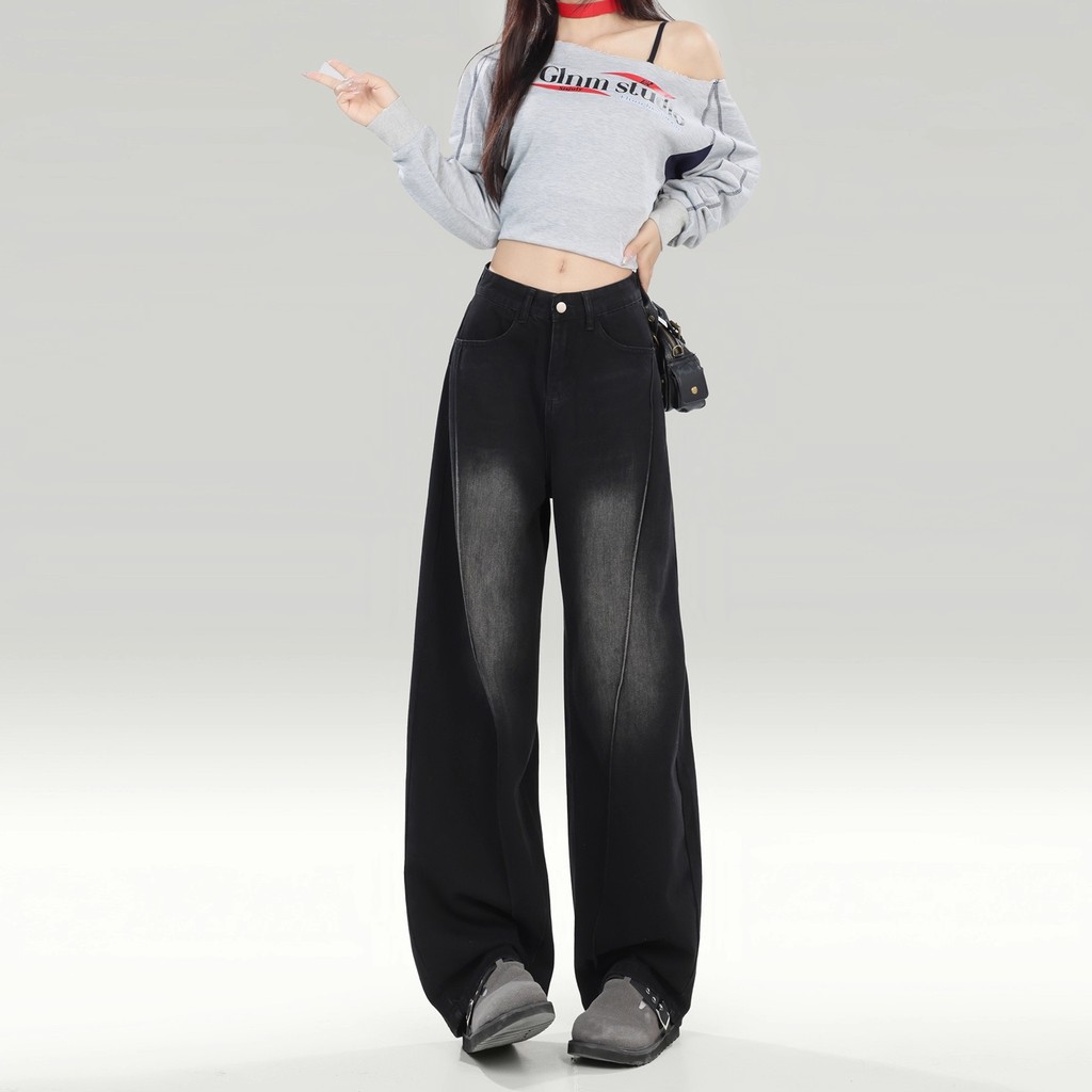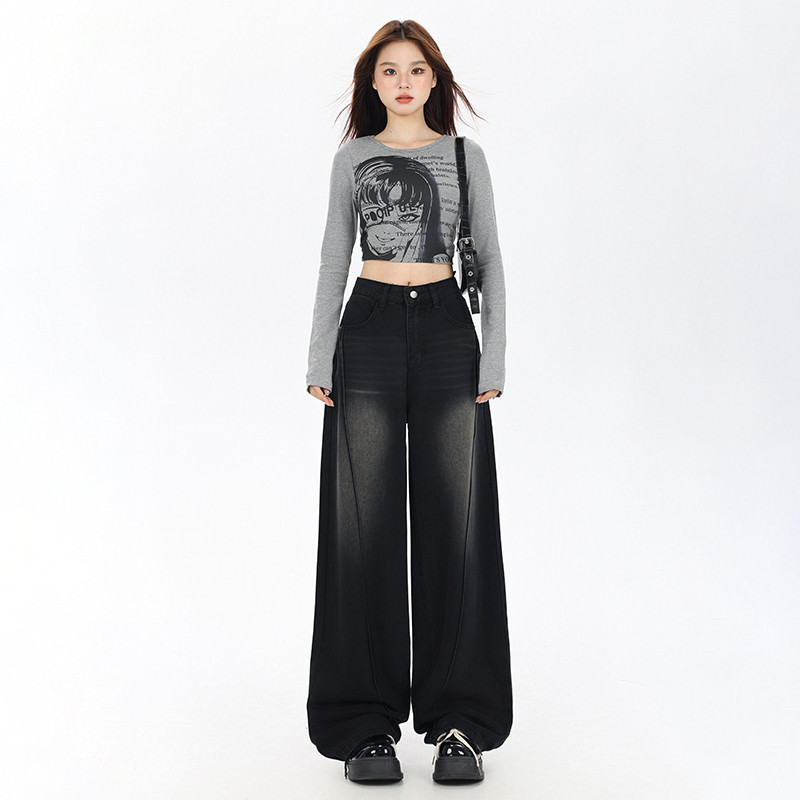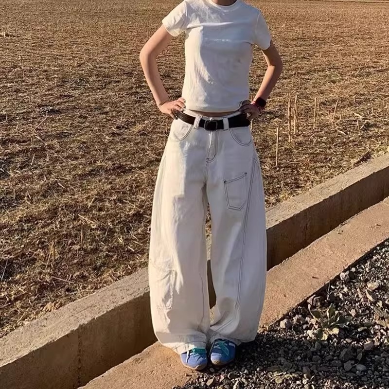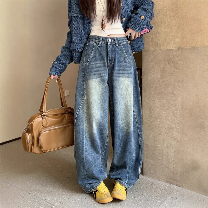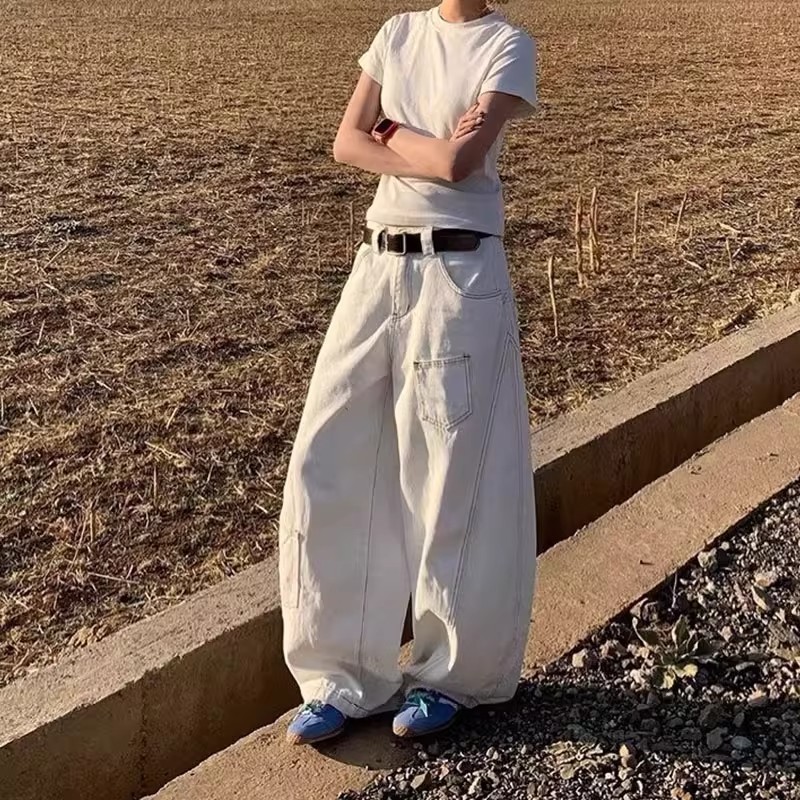 Retro Maong Baggy Pants for Women | High Waist Wide Leg Jeans | Arc Cut Curved Bow Leg Pants