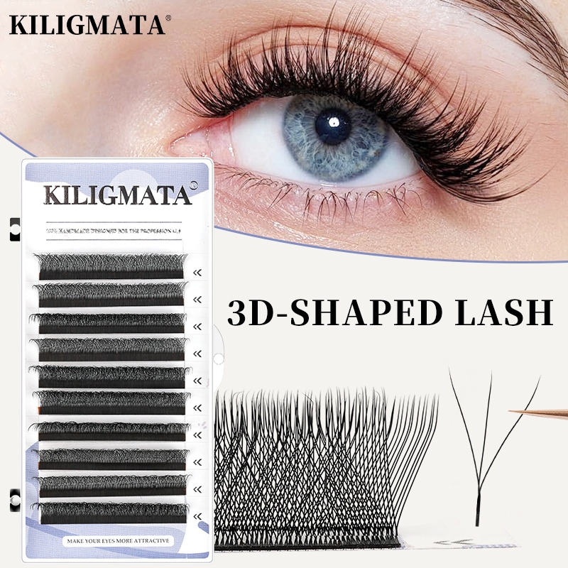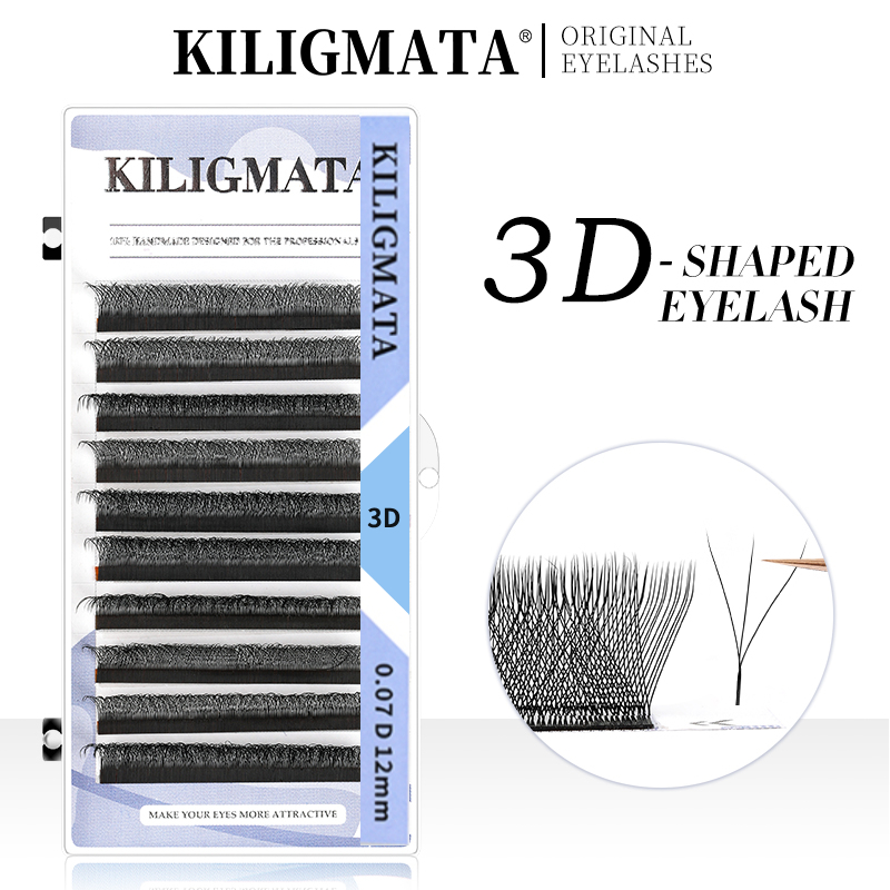 KILIGMATA 3D W Shape Eyelash Extensions 3 Tip C/D/DD Curve 0.07 High Quality Individual Style