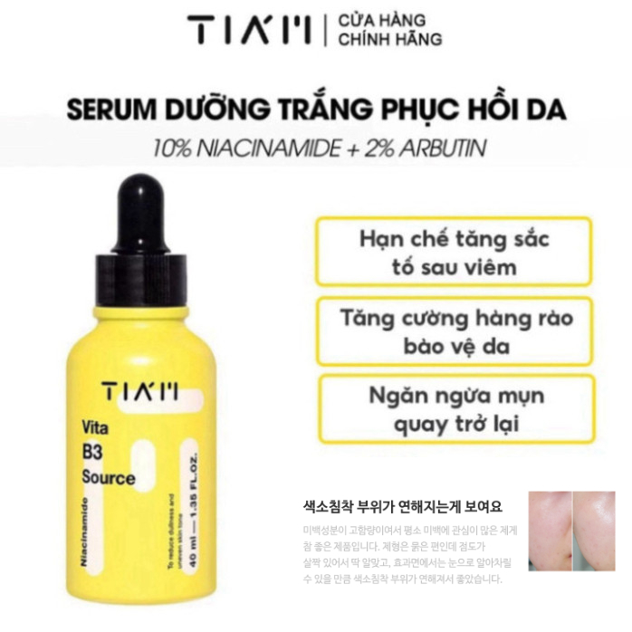 TIAM Vita B3 Source, 10% Niacinamide Serum, 2% Arbutin, Hyperpigmentation, Dark Spot Treatment, 1.35 Fl Oz 40ml