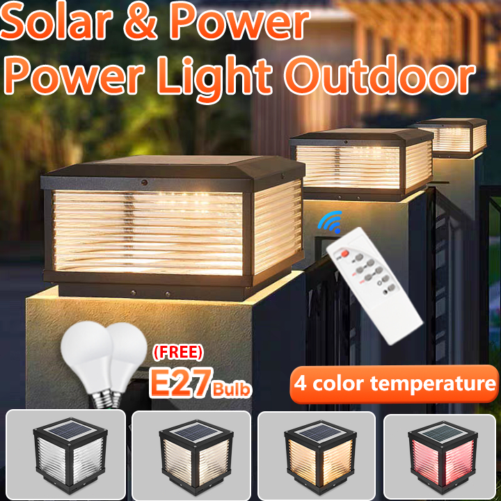 Solar Gate Pillar Light Outdoor Waterproof 3 Color Remote Control For yard Fence Column Lamp Garden