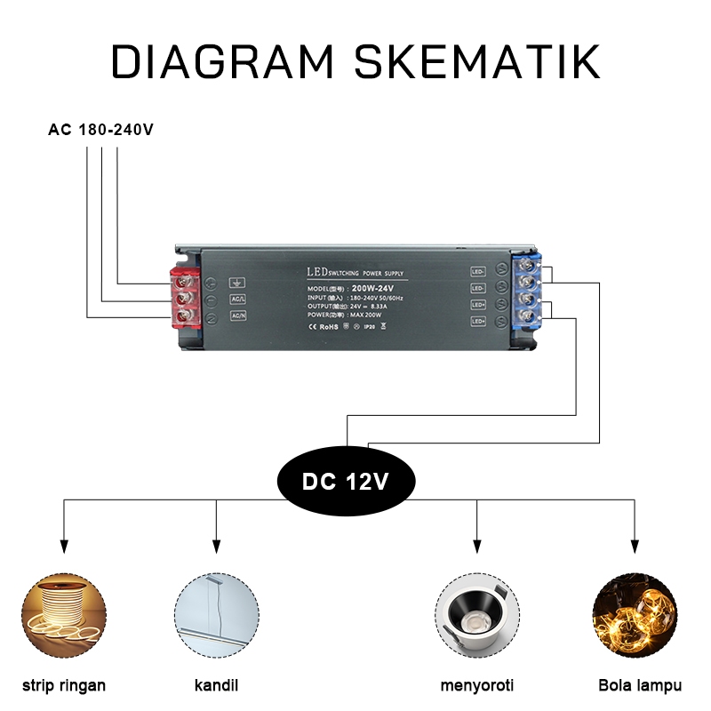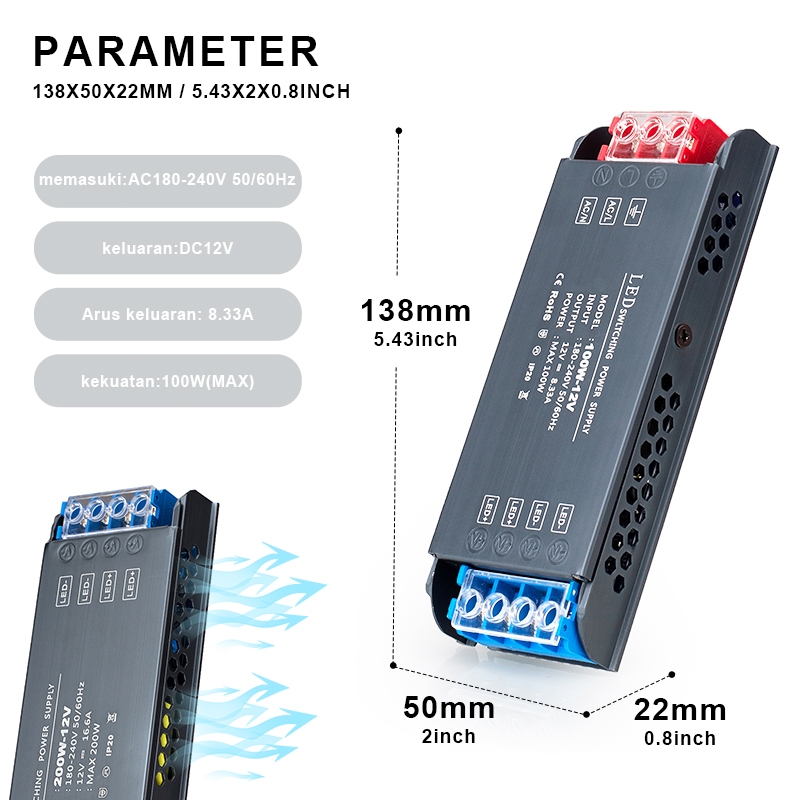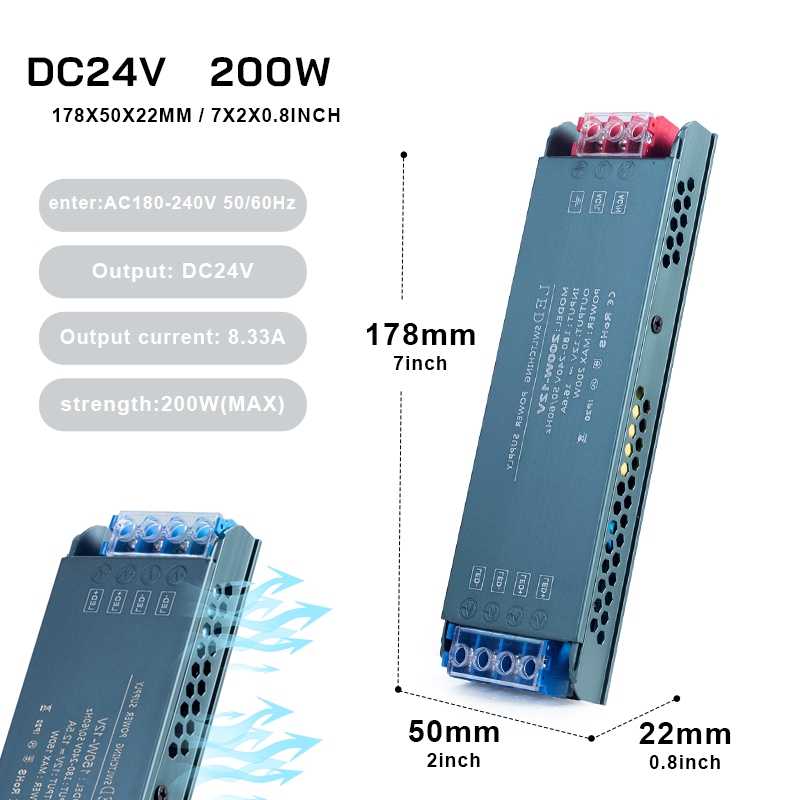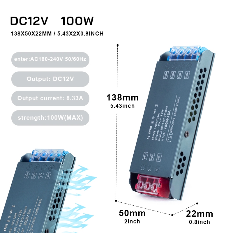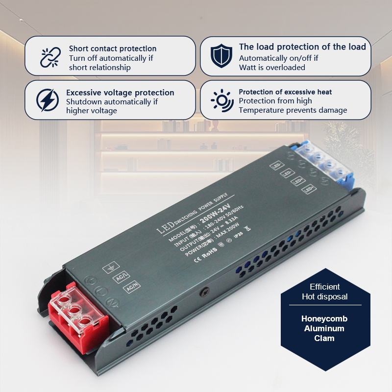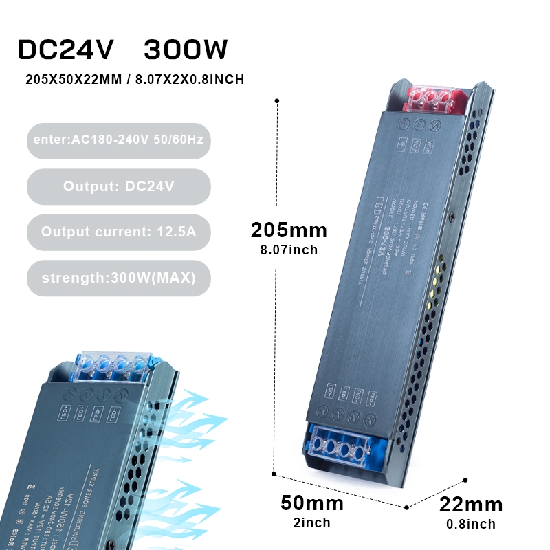 Ultra-thin LED power supply 12V/24V, AC to DC silent and flicker-free, power 100W/200W/300W/400W.