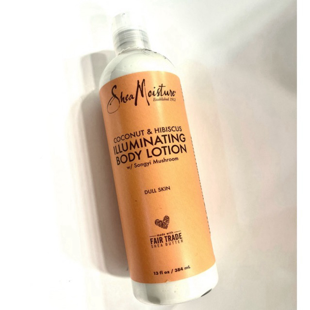 SheaMoisture Illuminating Body Lotion with Songyi Mushroom, Coconut & Hibiscus, 13 fl oz (384 ml).
