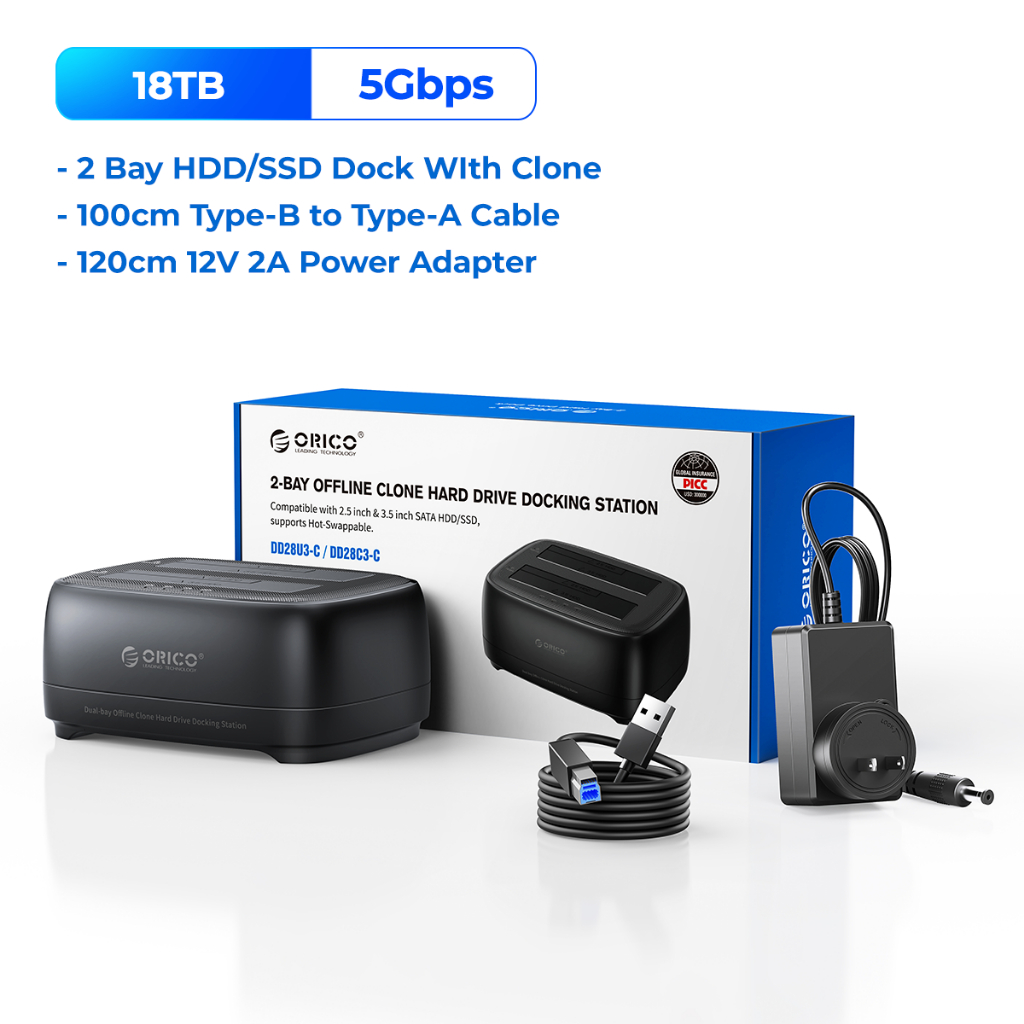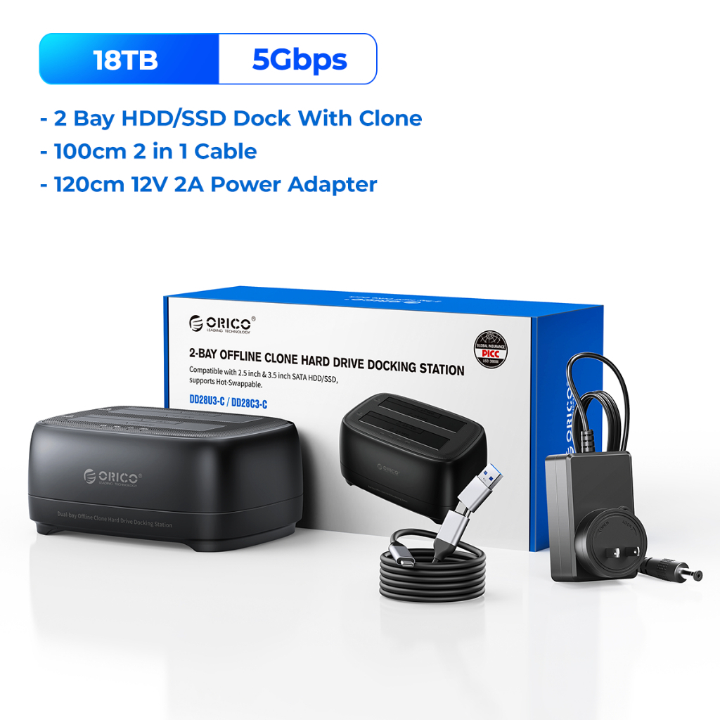 ORICO USB 3.0 to SATA HDD Docking Station with Offline Copy Function for (2.5" 3.5" Inch) HDD Enclosure Supports up to 36TB 10GbpsTpye-C/Tpye-B Cable Included