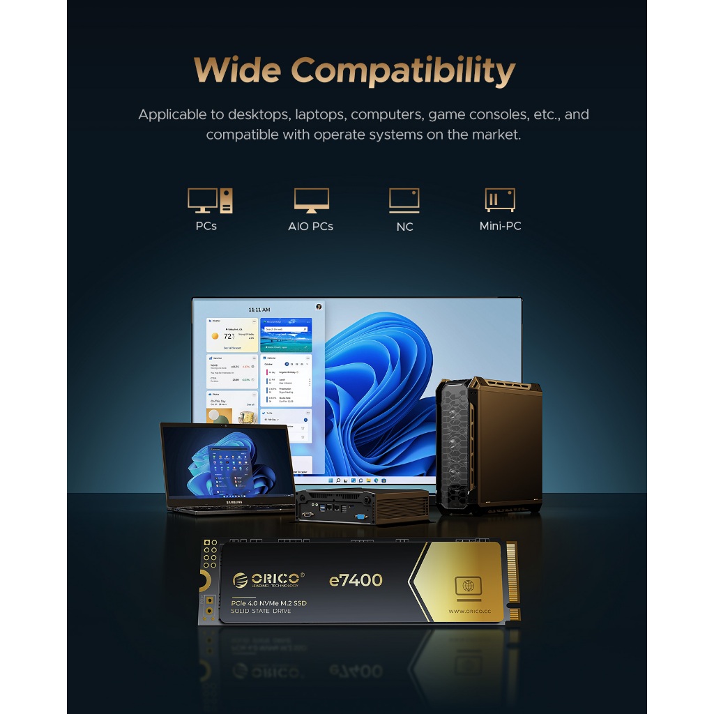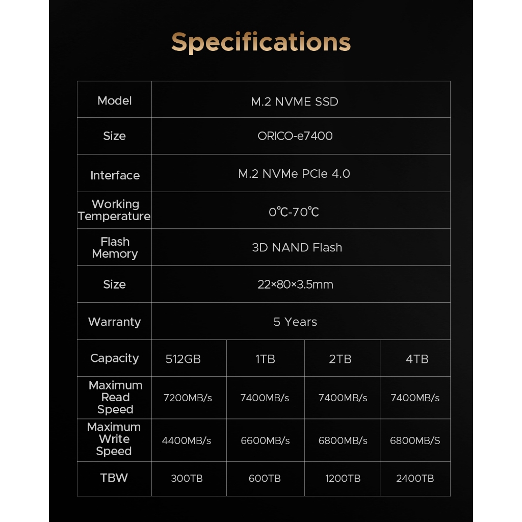 ORICO E7400 M.2 NVMe SSD PCIe 4.0 Up to 7400MB/s 512GB 1TB 2TB 2280 PCIe 4.0x4 Internal Solid State Drive (ORICO E7400)