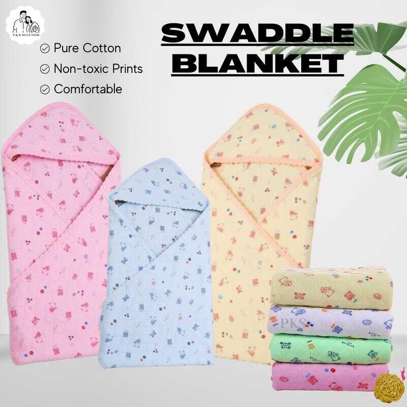 《Pks》 Infant Baby Receiving Blanket Swaddle With Cute Bear Printing Pure Cotton Newborn Bl