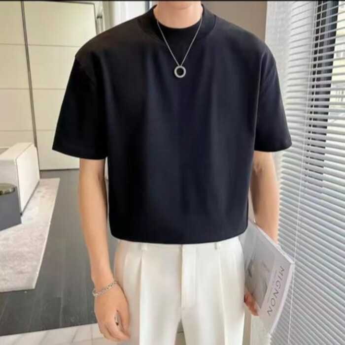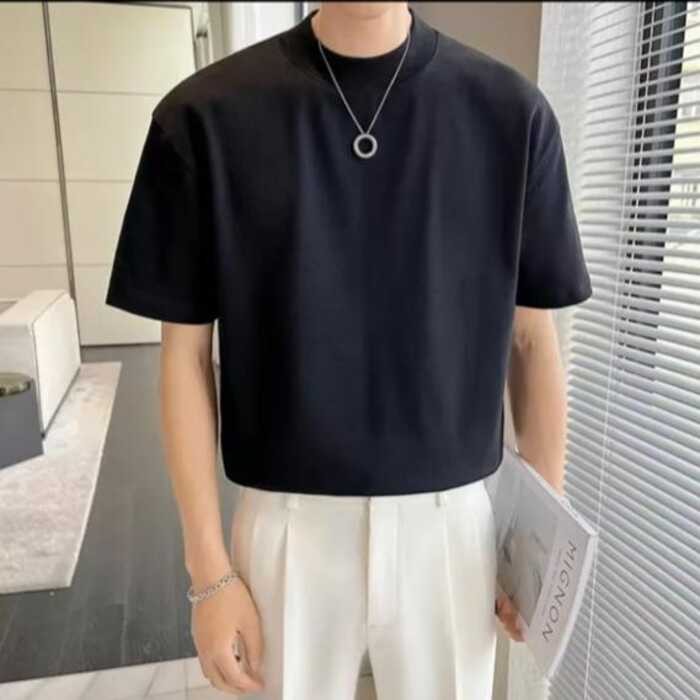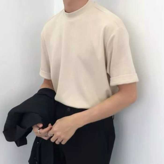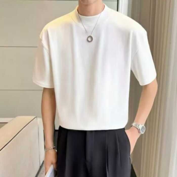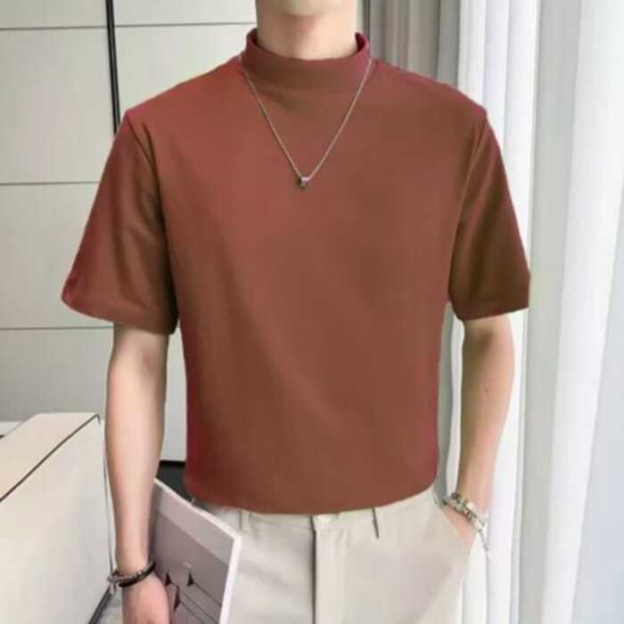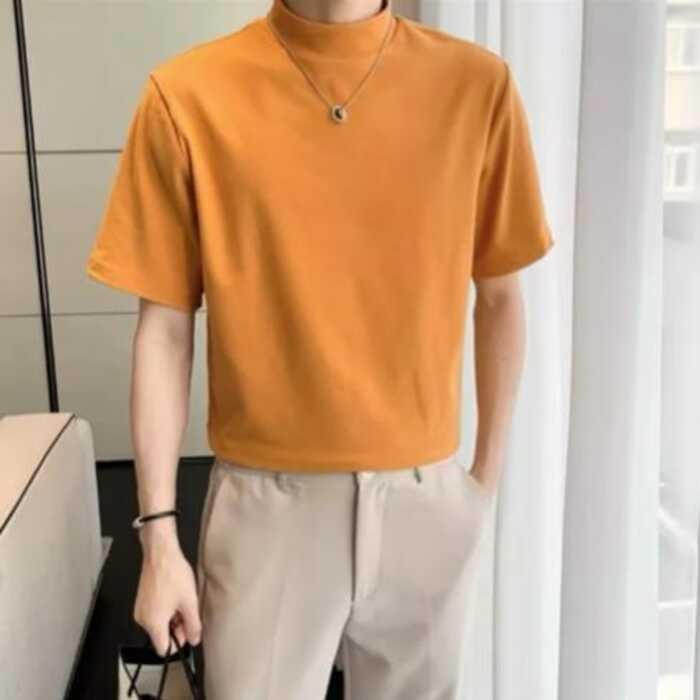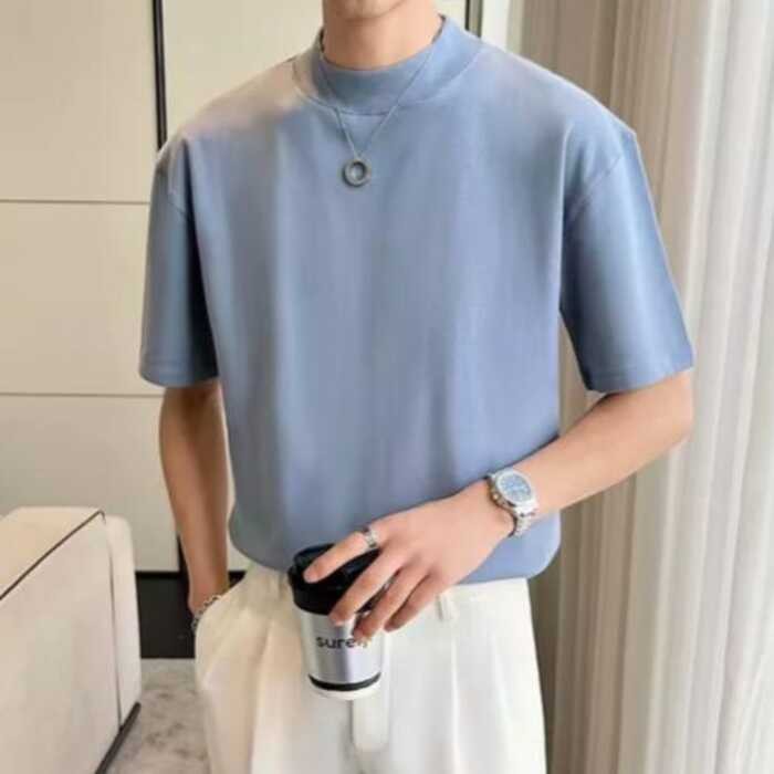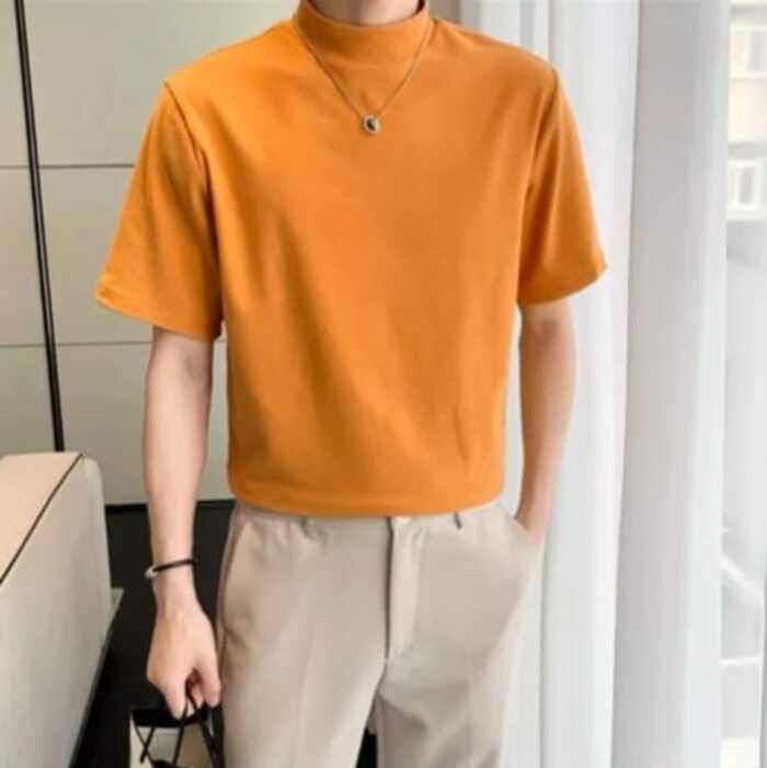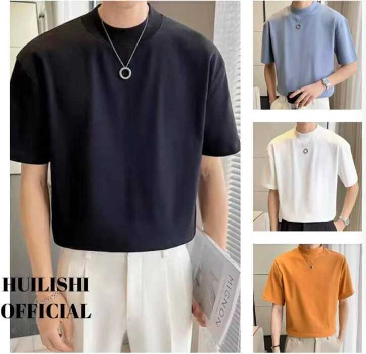 HUILISHI OFFICIAL NEW IN KOREAN STYLE PURE COTTON HIGH Or TURTLE NECK TOP SHORT SLEEVES SHIRT