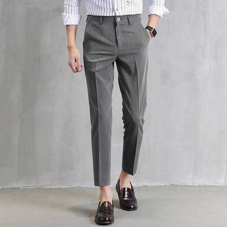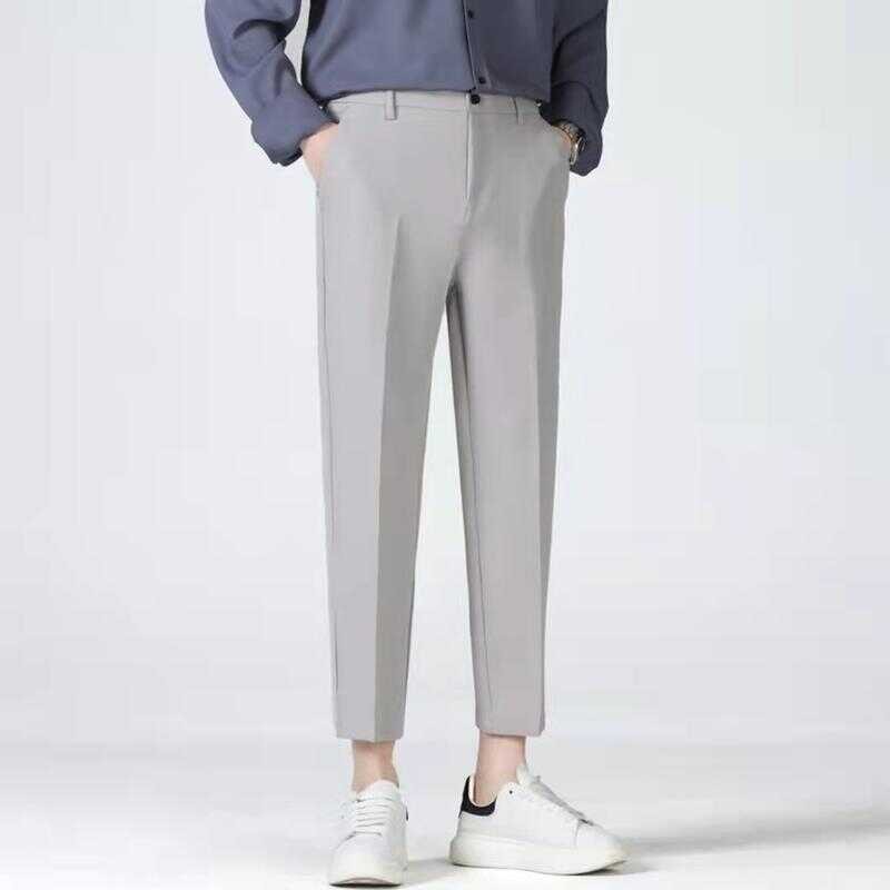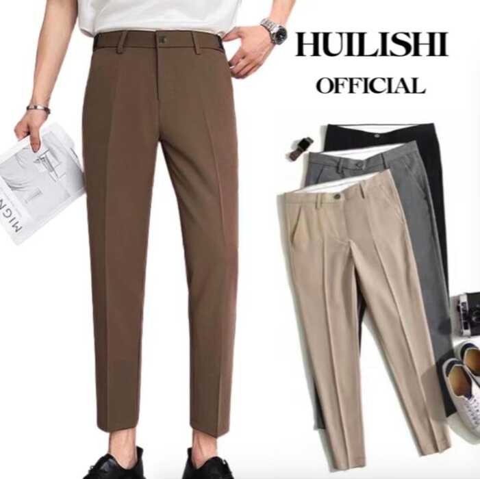 HUILISHI OFFICIAL KOREAN STYLE ANKLE CUT SLIM FIT TROUSER COTTON SILK FABRICK MID WAIST WITH POCKETS