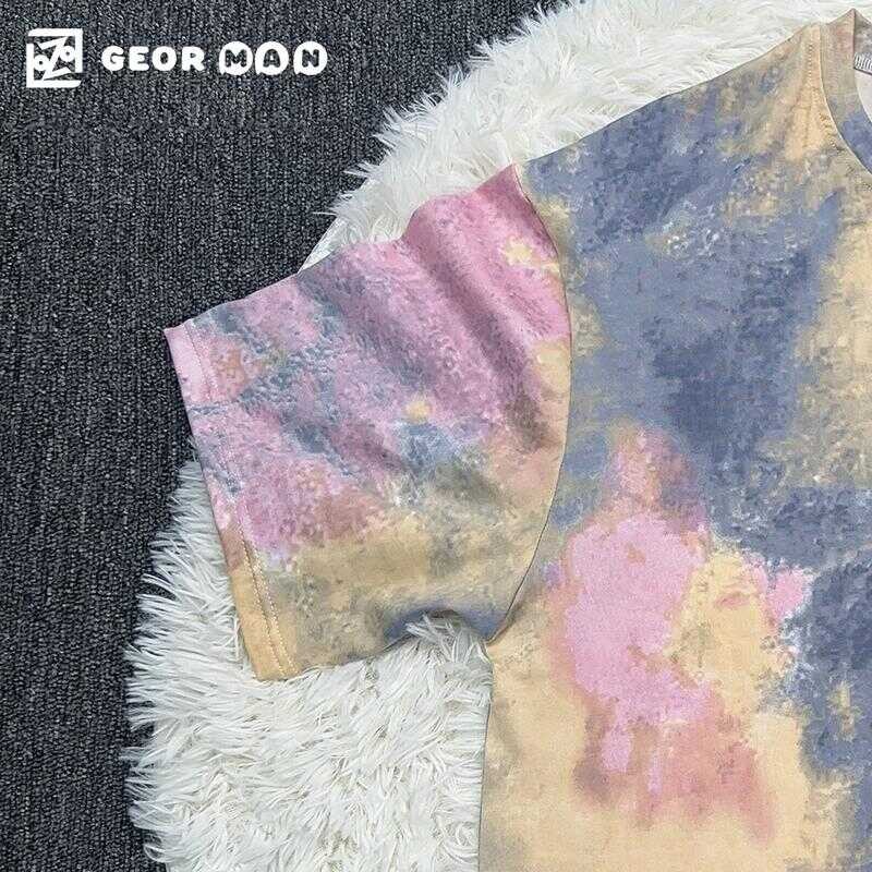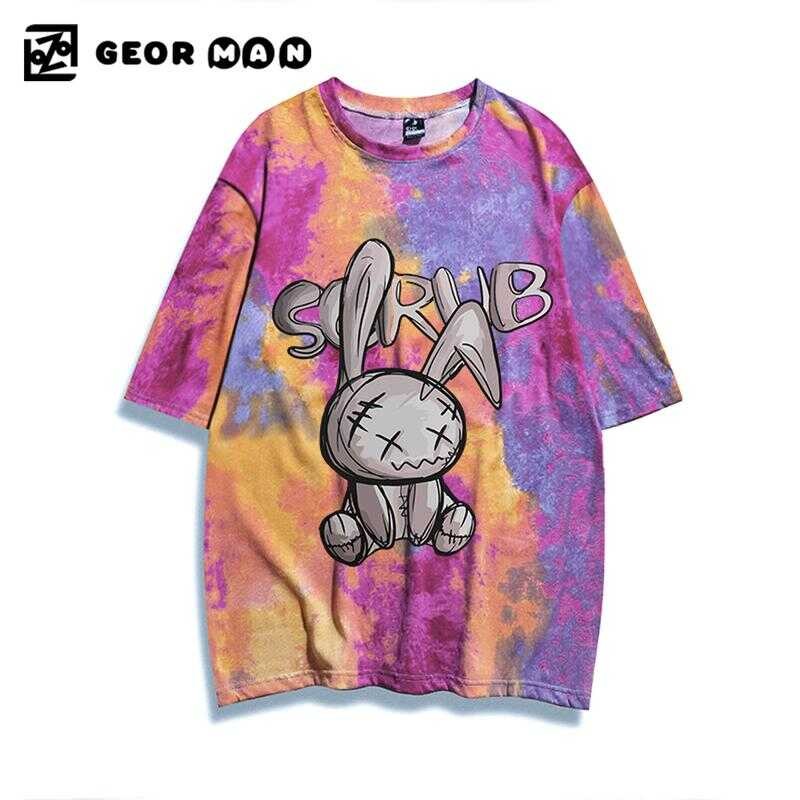 Georman Mall Summer New Round Neck Tie-Dye T-Shirt Rabbit Cartoon, Same Style For Men And Women