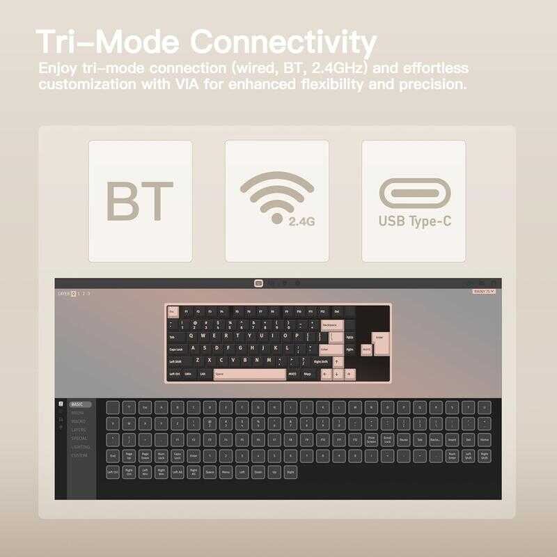 WOBKEY Rainy 75 CNC Aluminum Hmx/Jwk/Cocoa Switches Triple-Mode Connectivity Mechanical Ke
