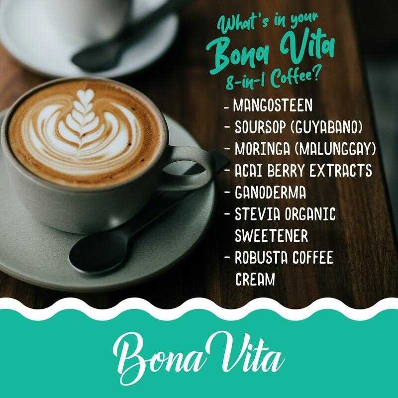 Bonavia 8 In 1 Coffee Drink Mix Wih Malunggay, Mangoseen, Guyabano, Ganoderma & Acai Berry