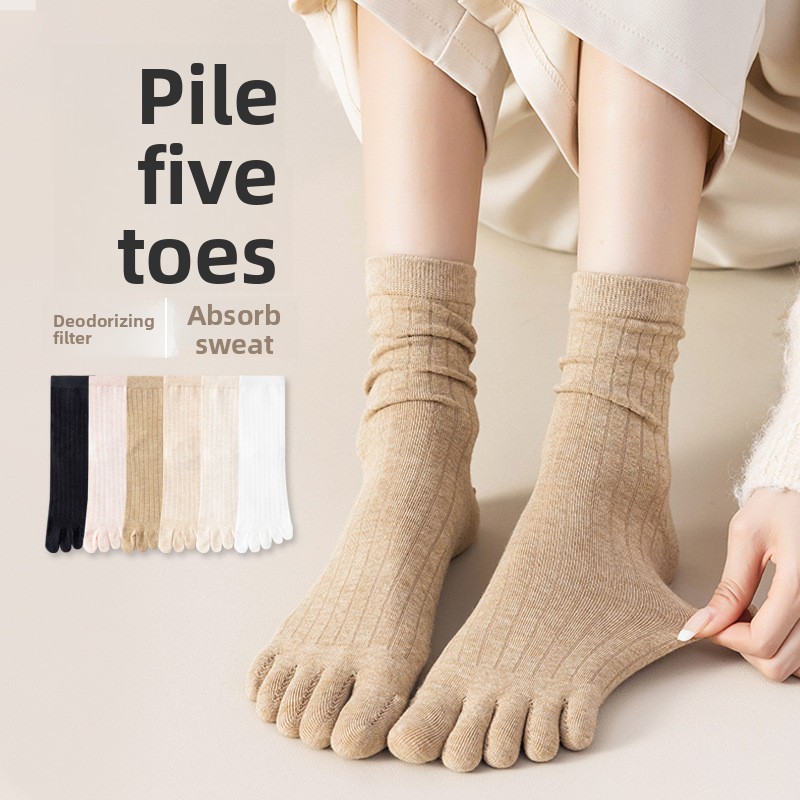 Five-Finger Socks Ladies Women's Long-Tube Toes Split Toes Black Deodorant Sweat