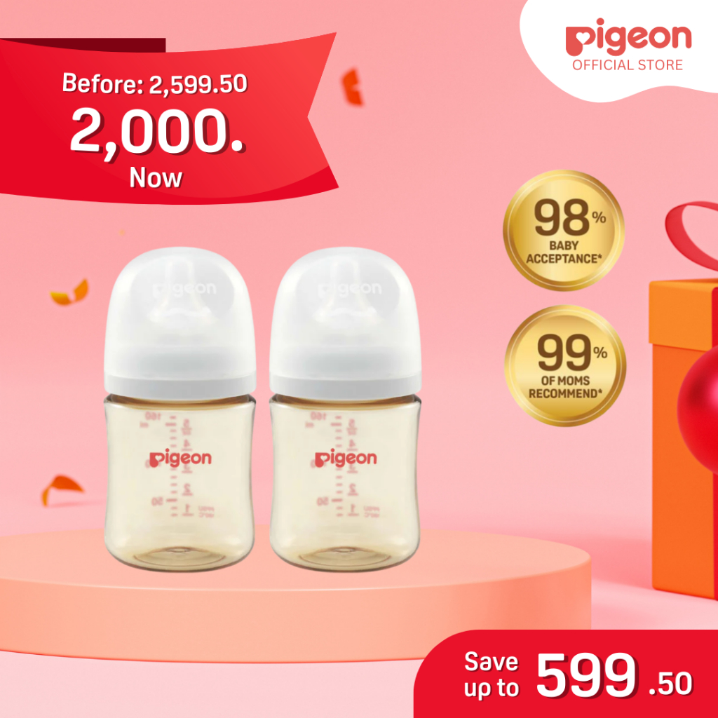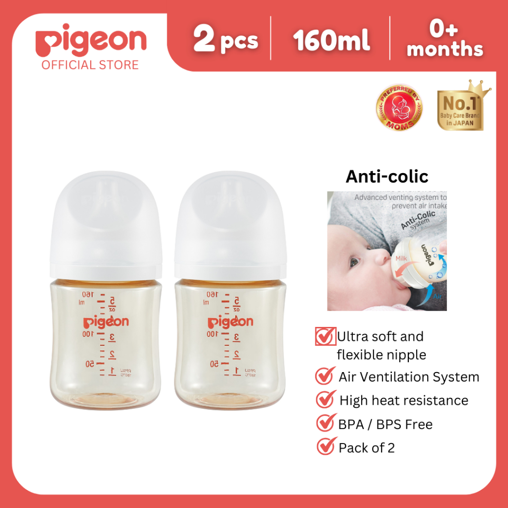 Pigeon Official Wide Neck PPSU Feeding Bottle 160ml 2pcs for Newborn Anti Colic No Nipple Confusion