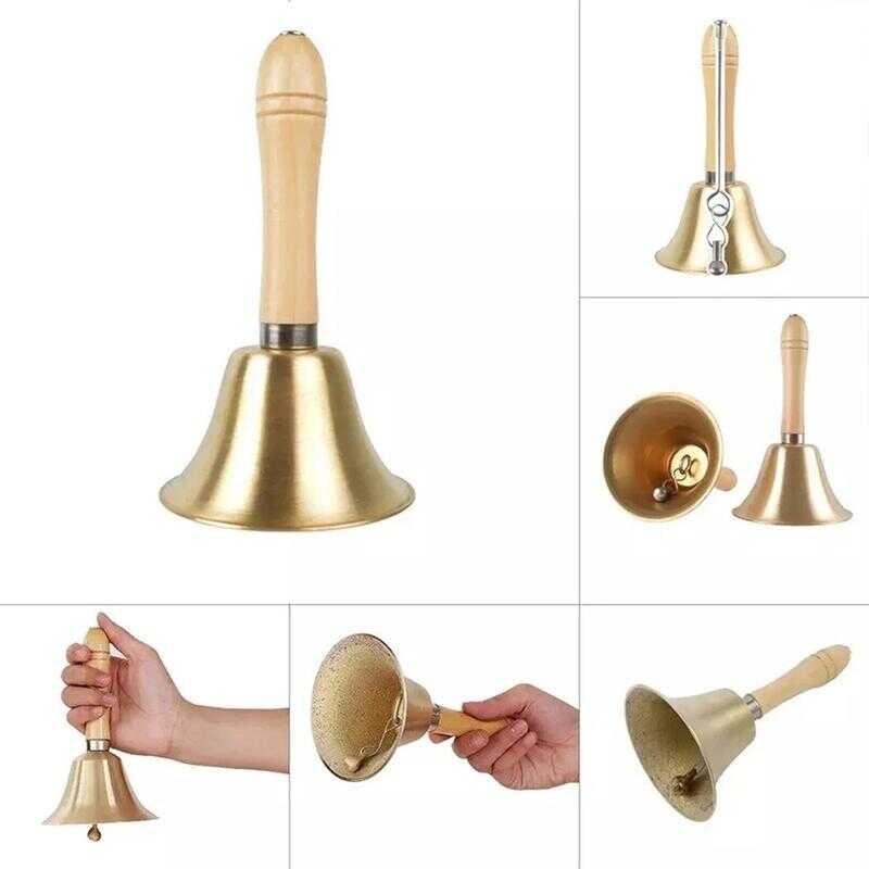 【In Stock】Brass Hand Bell Loud Call Bell Handbell Desk Ringbell With Handle For Wedding Food Li