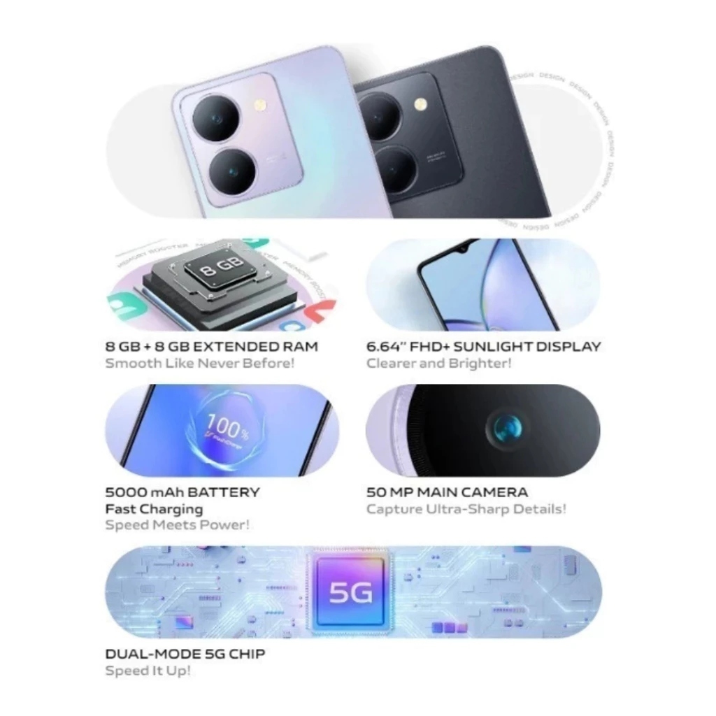 𝐕𝐈𝐕𝐎 Y27 5G l New Version 6GB Extended RAM + 128GB ROM l AI CAMERA l 6.64" FHD+ Sunlight Display