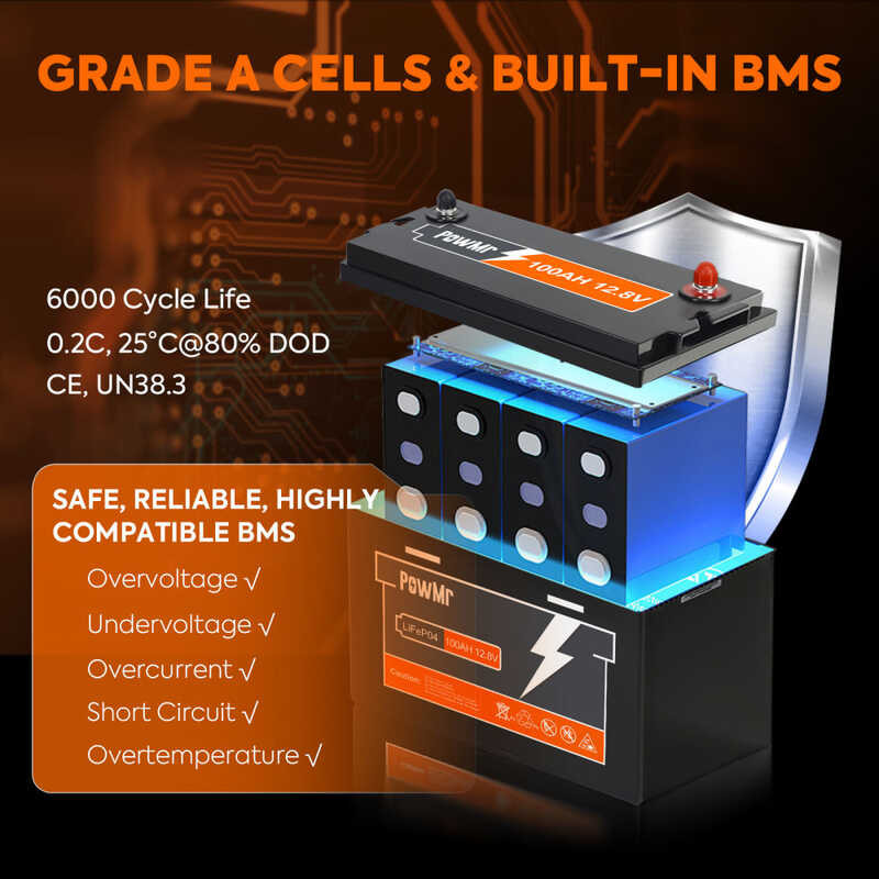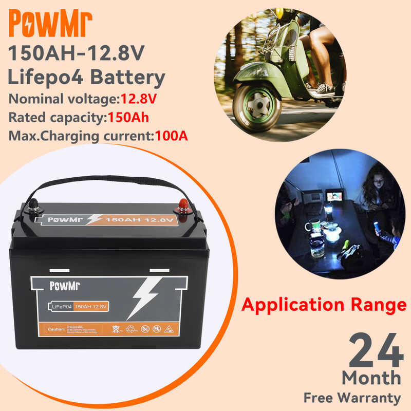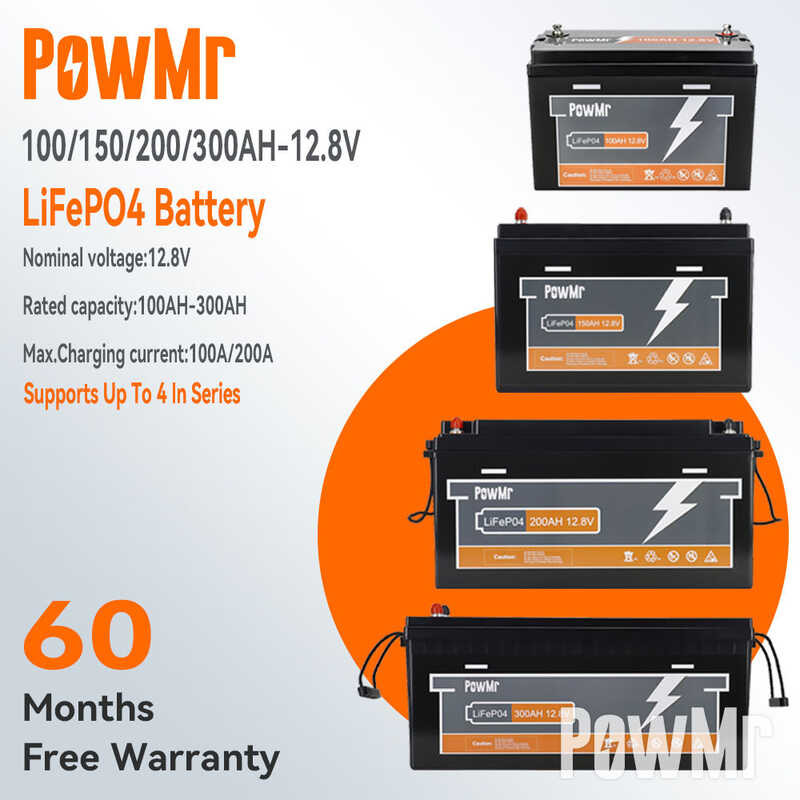 Powmr 12.8V 100/150/200/300Ah Lifepo4 Battery Solar Battery Multi-Purpose Battery Suitable For S