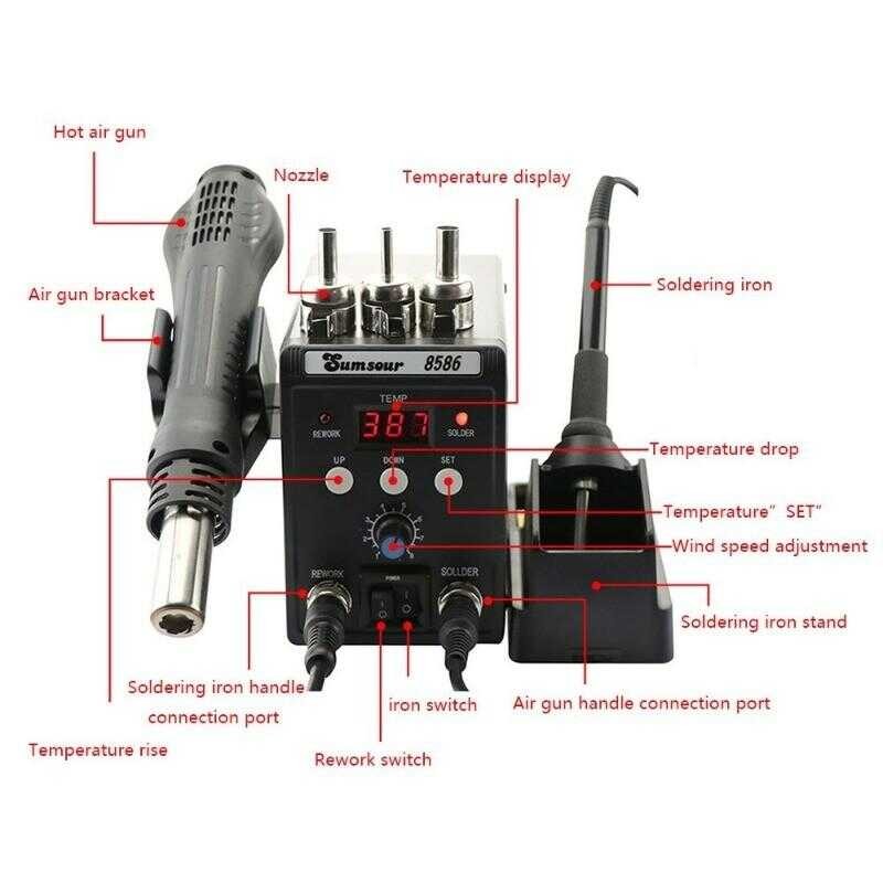 8586 Digital Soldering Station 2In1 Soldering Iron Heat Gun Hot Air Blower Desoldering Tool For