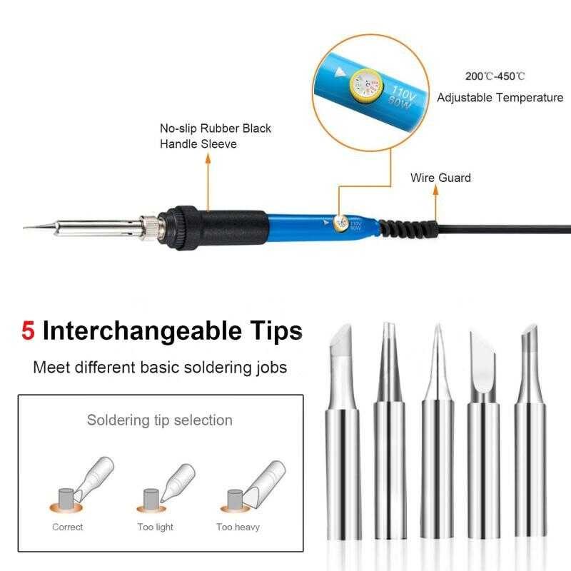 15 In 1 Soldering Iron Set 60W 220V Electronic Iron Kit 200-450°C Adjustable Temperature