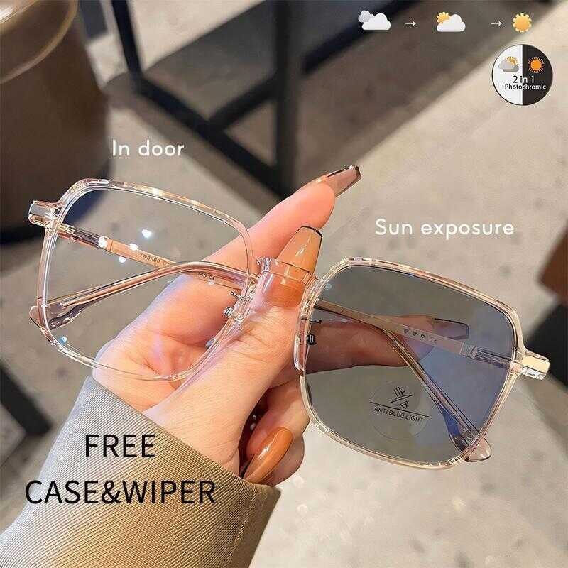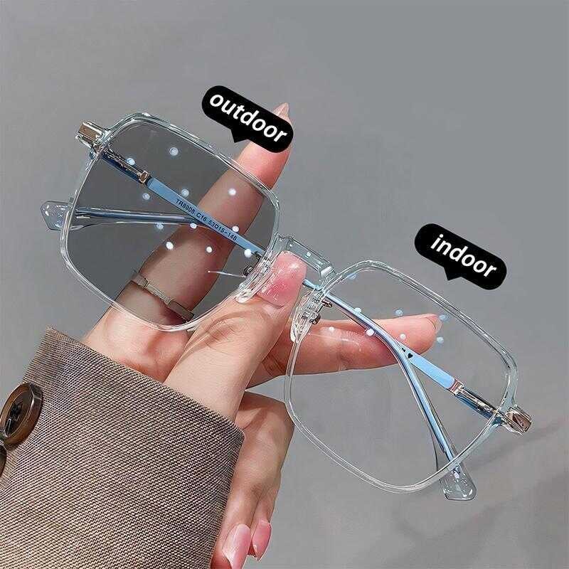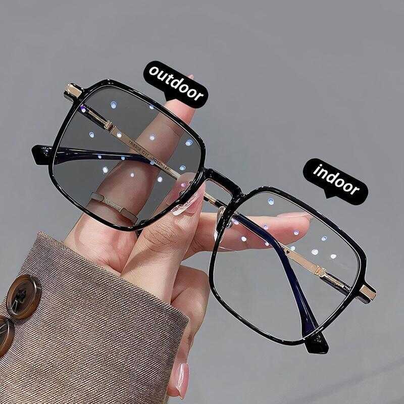 #2205 Good Quality Ultra Light Large Frame Photochromic Anti-Blue Light Metal Frame Glasses Men