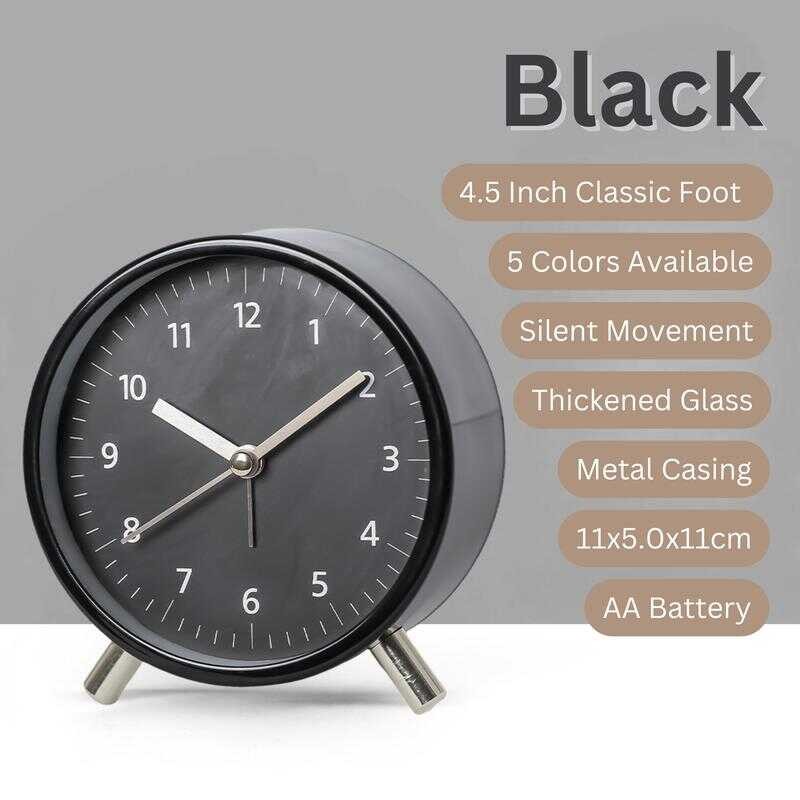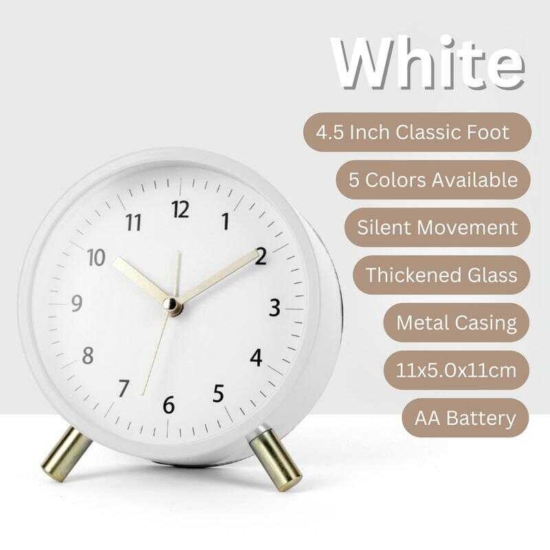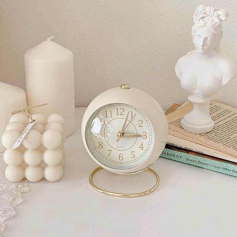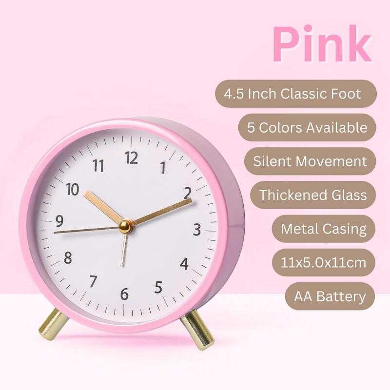 Topo Home PH 2025 Vintage Metal Alarm Clock With Night Light, Silent Desk Clock For Bedroom, Po