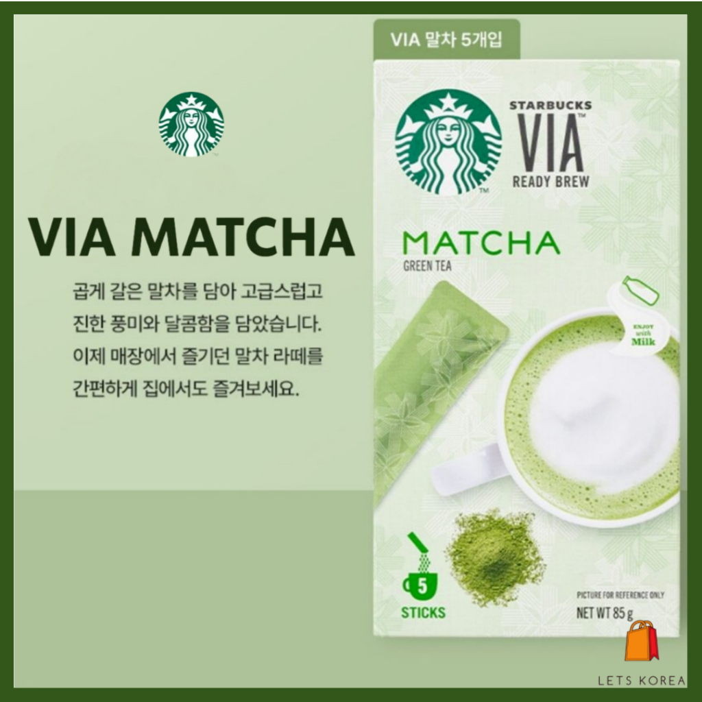Starbucks VIA Matcha Green Tea Latte 5 Sticks – Premium Japanese Matcha Powder / Hot Iced