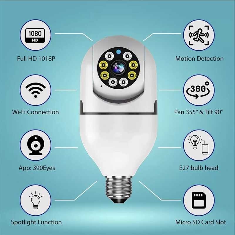 HD 1080P Can Be Rotated 360° Siren Alarm Smart CCTV Camera Bulb Indoor And Outdoor Waterproof N