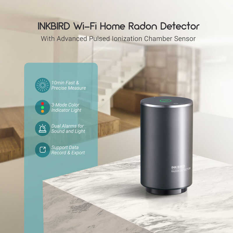 INKBIRD INK-RD2 Home Detector WiFi Radon Monitor with Pulse Ion Chamber Sensor Integrated Sound