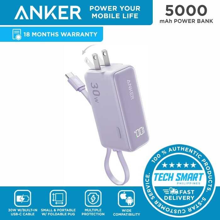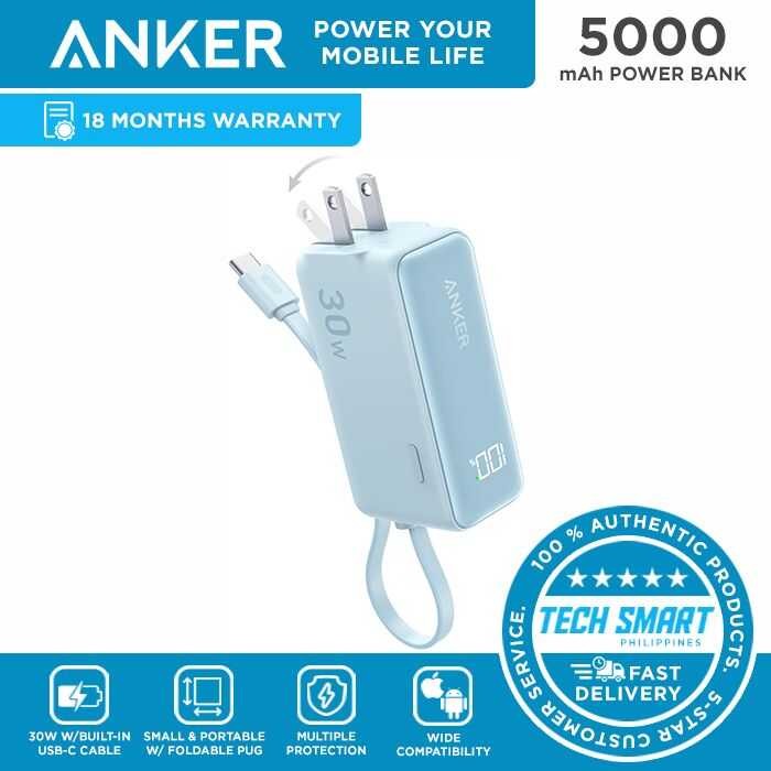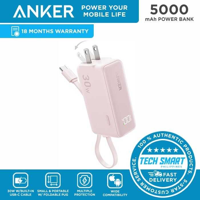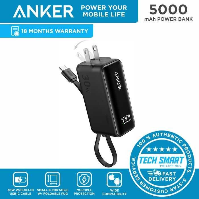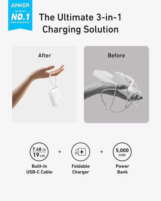 Anker Power Bank USB C Charger Block, 3-In-1 5,000Mah Portable Charger With Built-In Usb-C