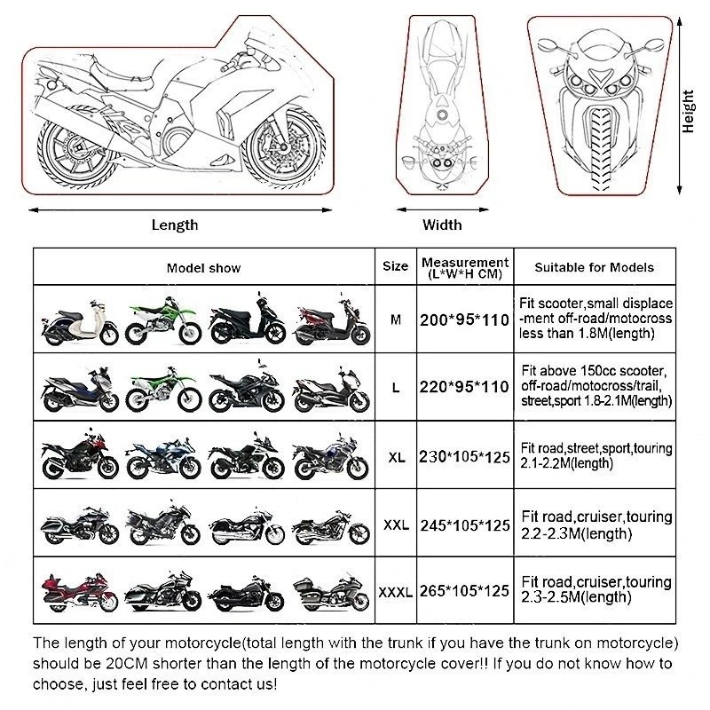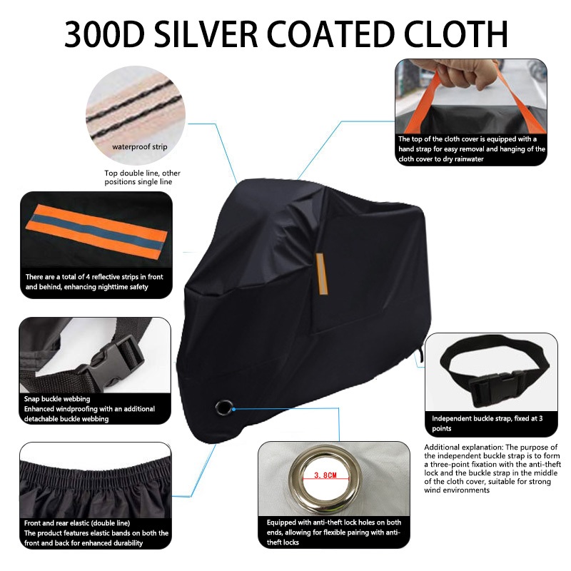 Motorcycle Cover Waterproof 3 Layers Heavy Duty Rain Dust Cover Sun Protective cover with Lock Hole