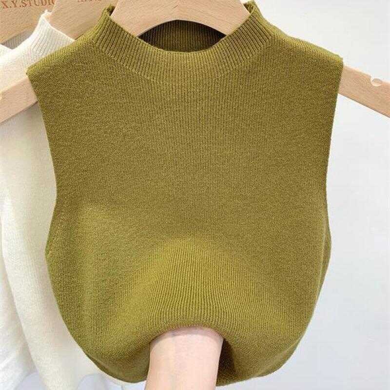 TTK 701301 Korean Fashion Half Turtleneck Knitted Croptop Summer Women Casual Solid Color
