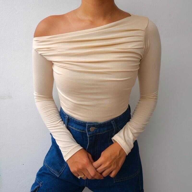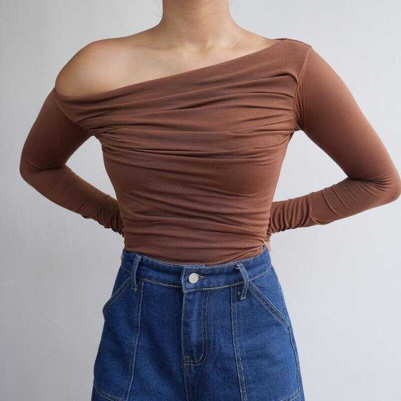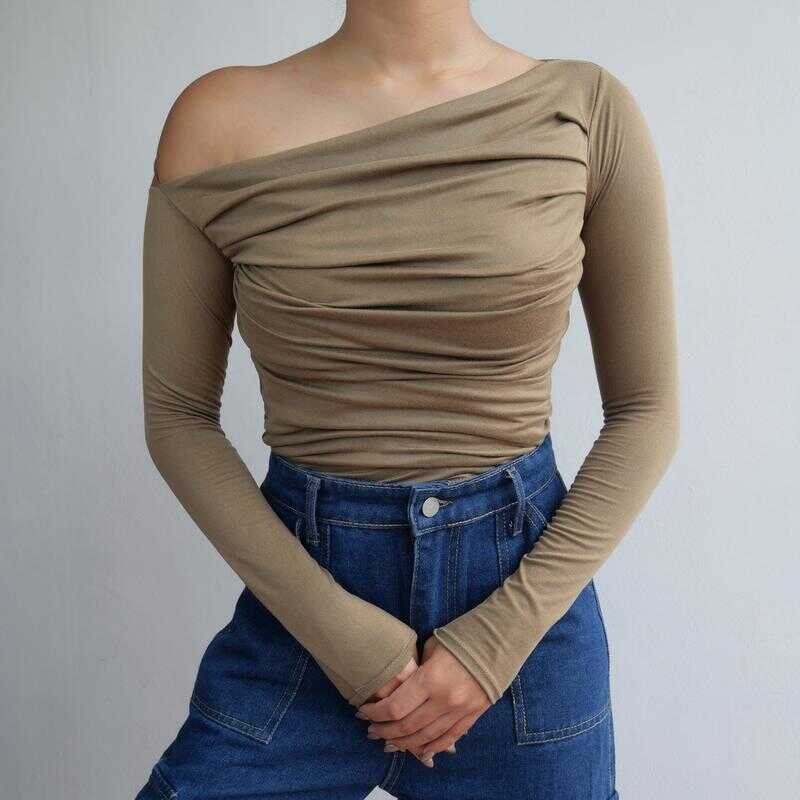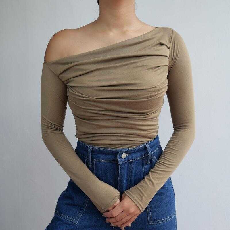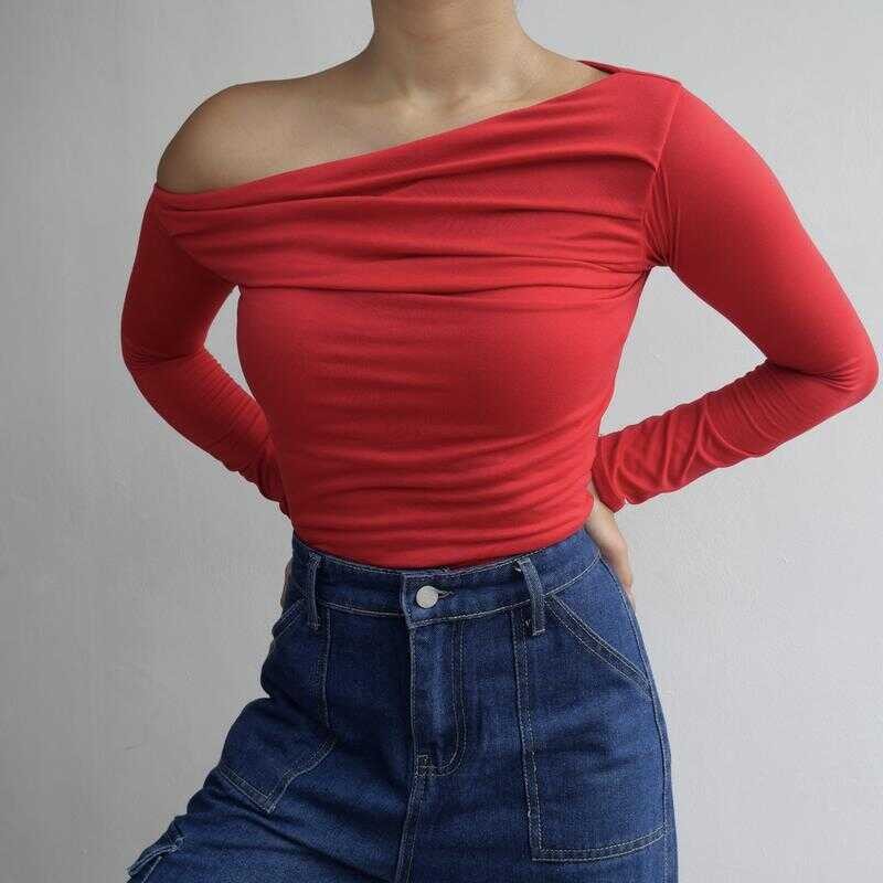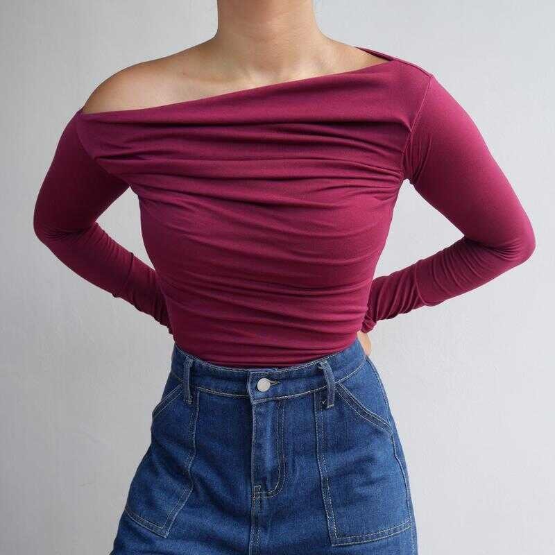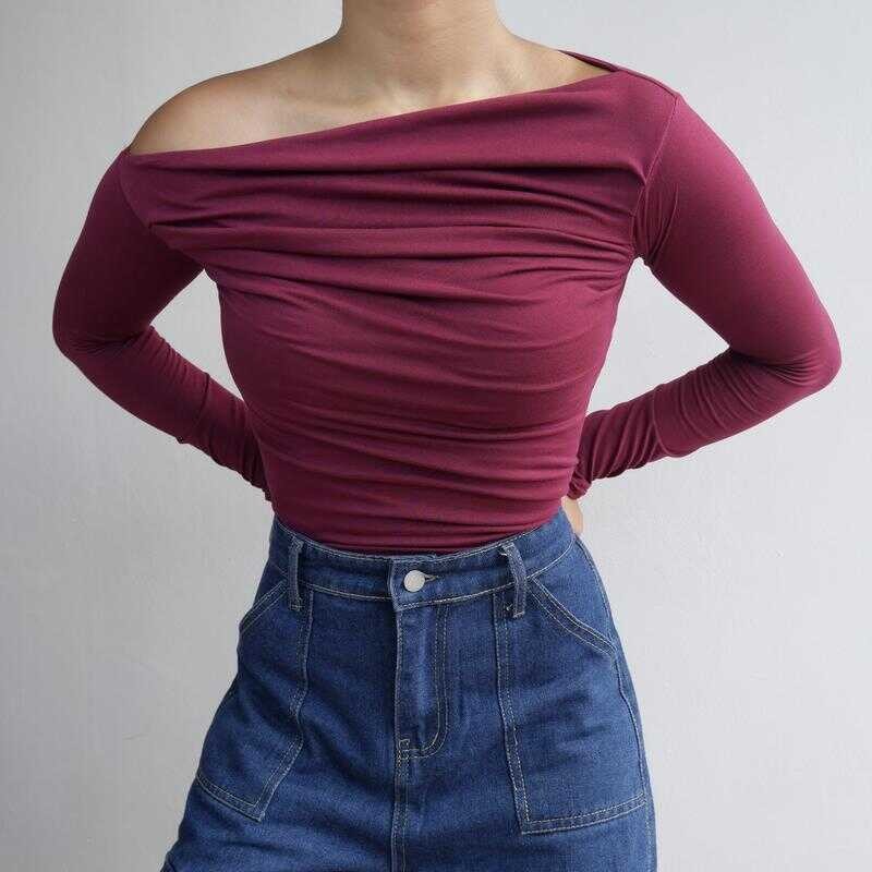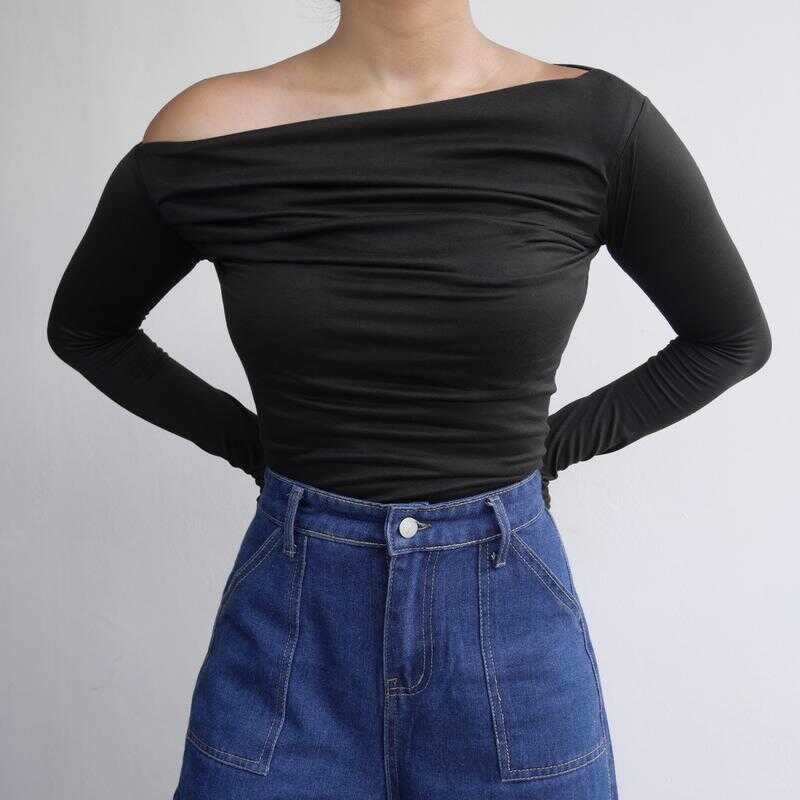 VXN -SCARLETTE- Asymetric Off Shoulder Longsleeves Cotton Full Lenght Top Basic Womenswear
