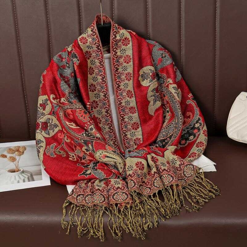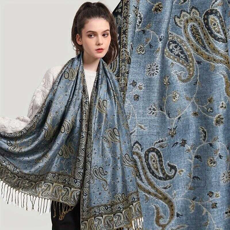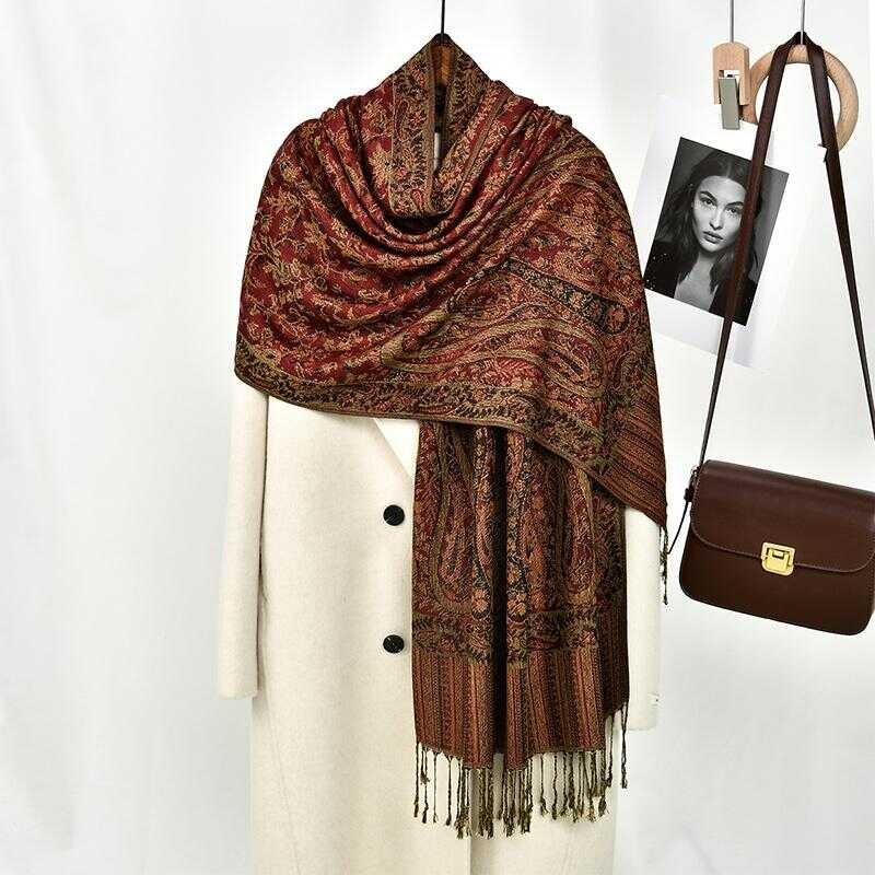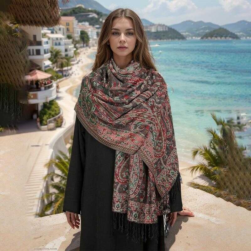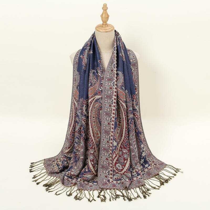 LAVEN Vintage Cashew Ethnic Shawl Muslim Headscarf Tassel Scarf Printed Hijab Comfortable Long