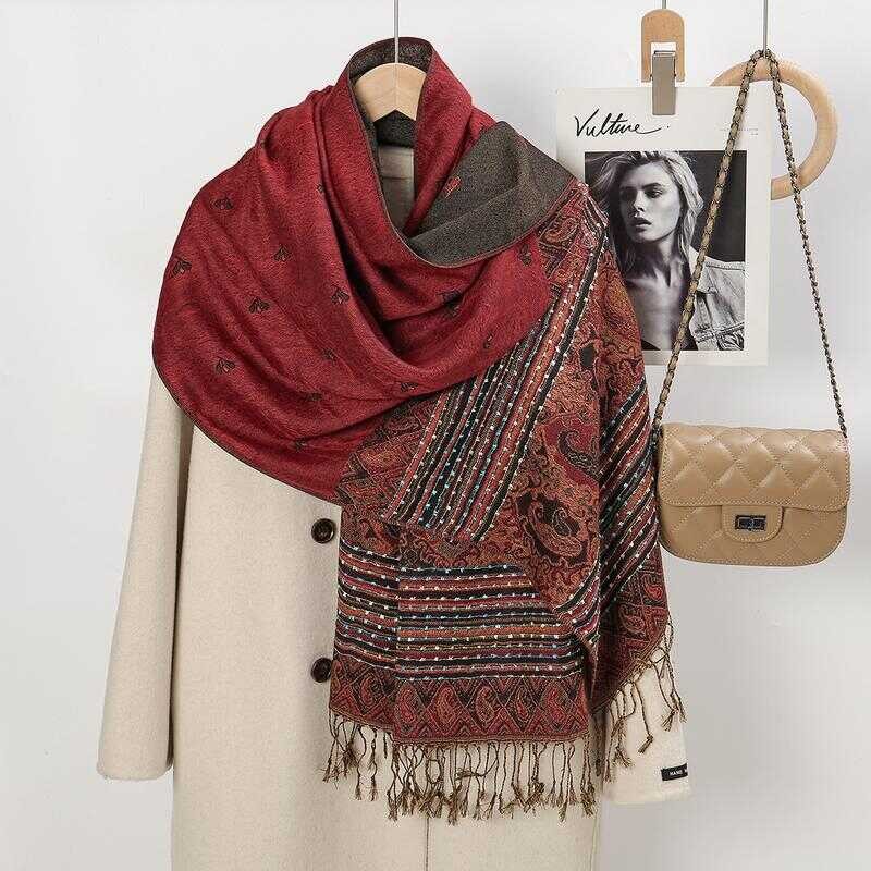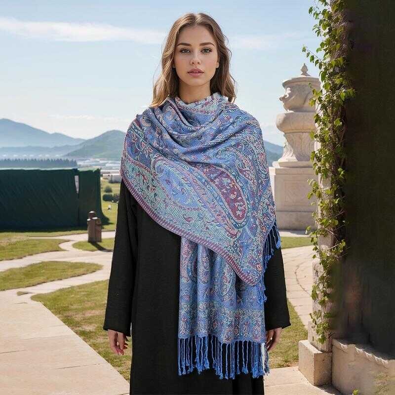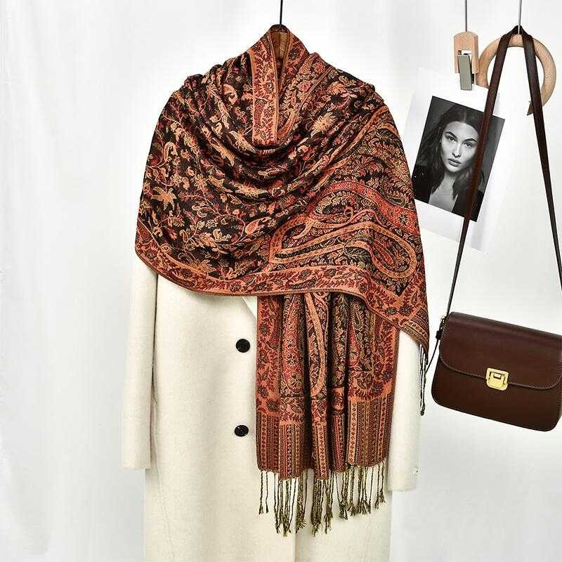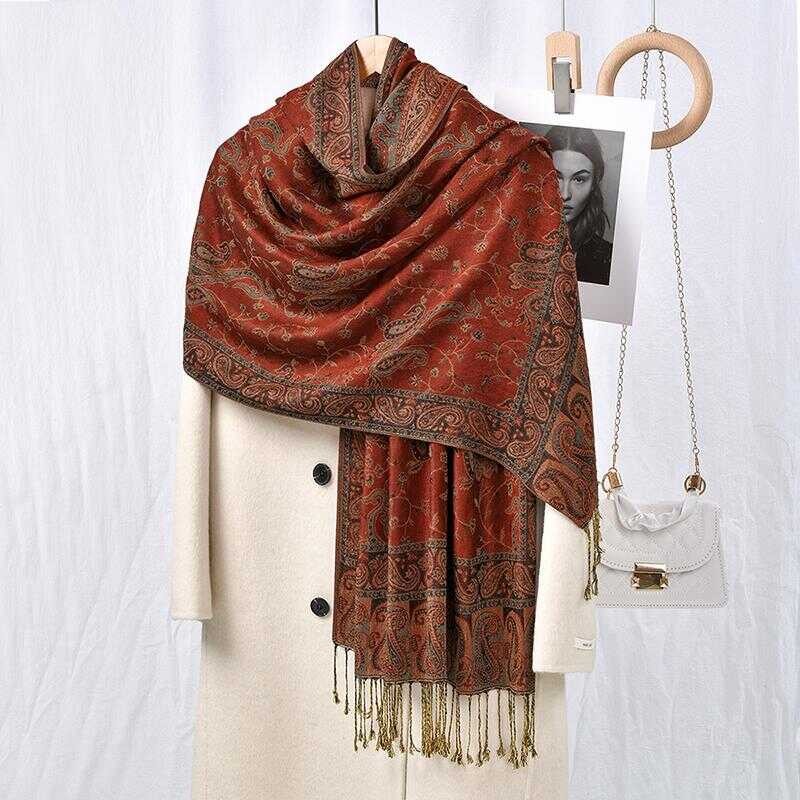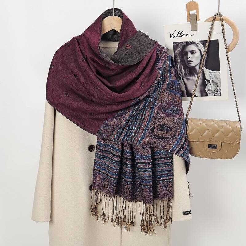 LAVEN Vintage Cashew Ethnic Shawl Muslim Headscarf Tassel Scarf Printed Hijab Comfortable Long