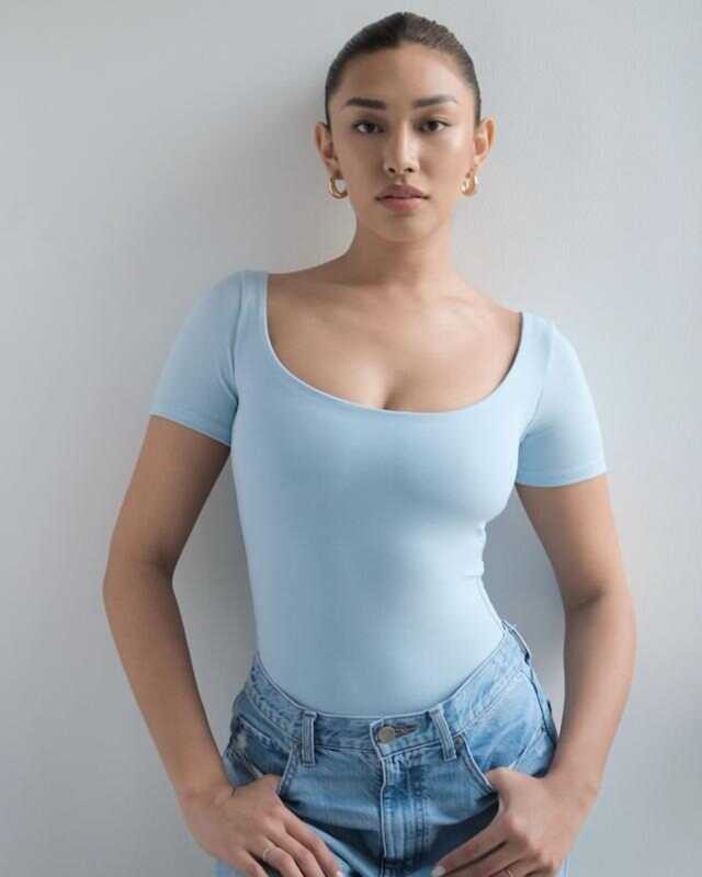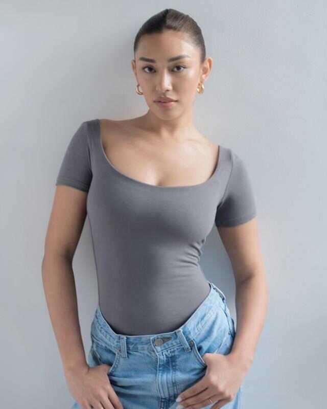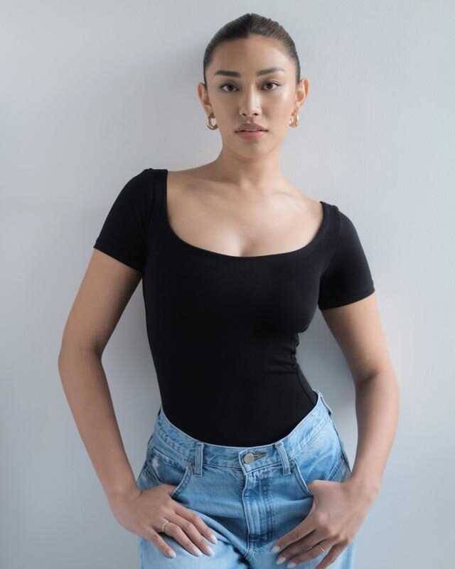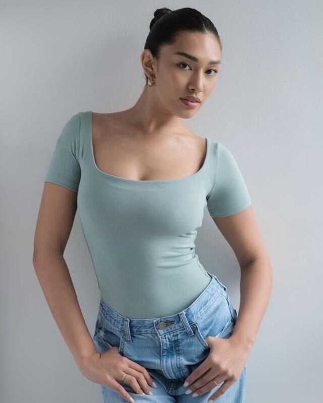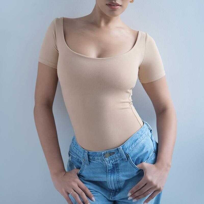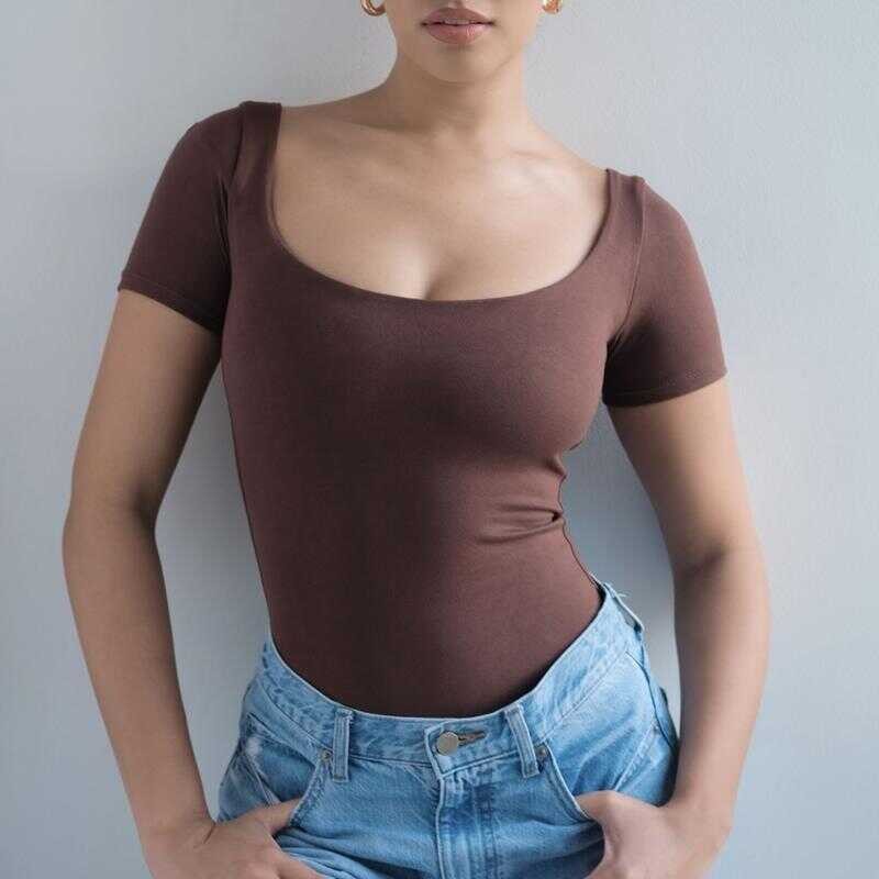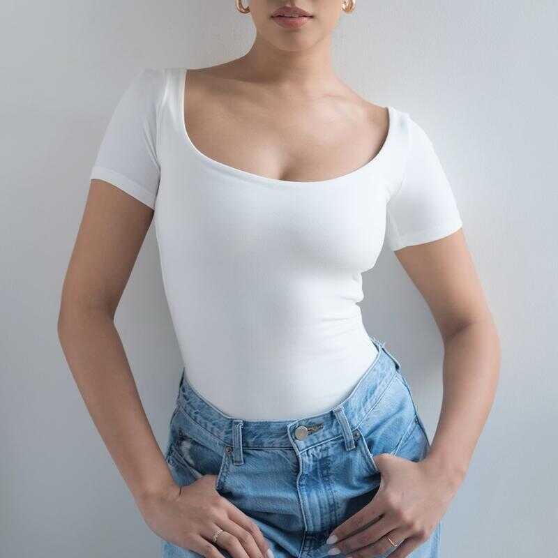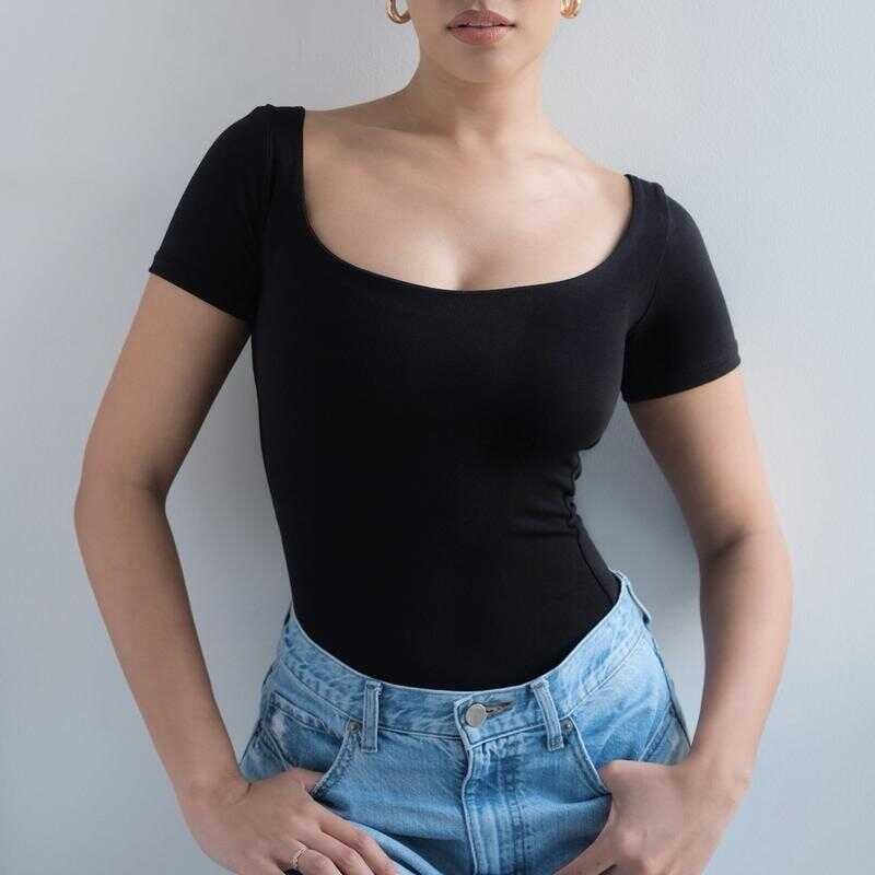 Mera Martina Scoop Neck Top Slim-Fitting Womenswear Cotton Plain Basic Fabric Spandex Casual Je
