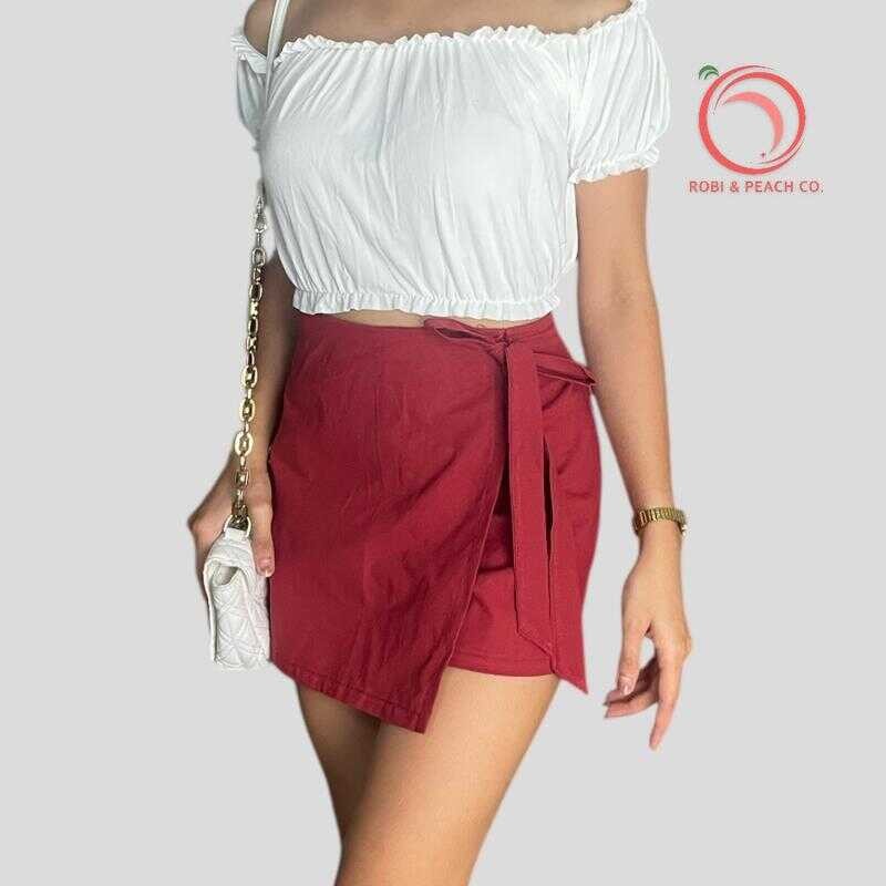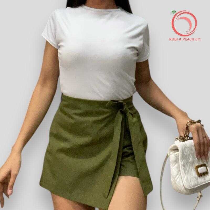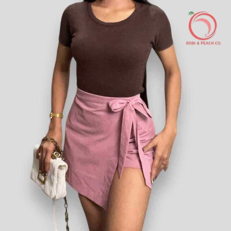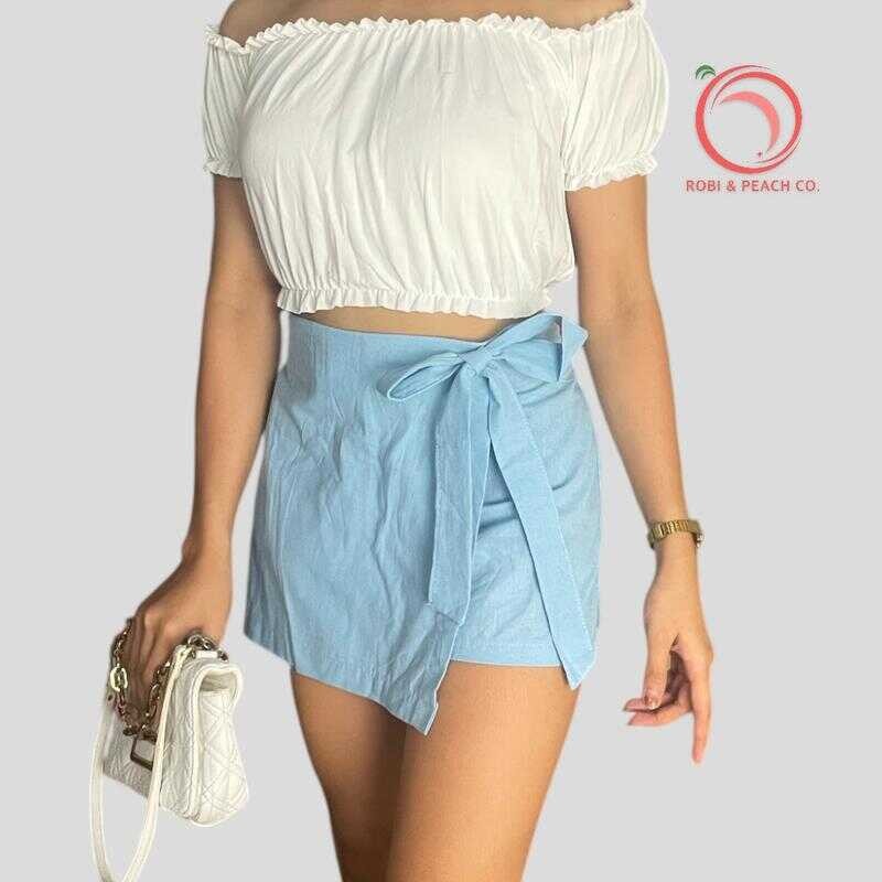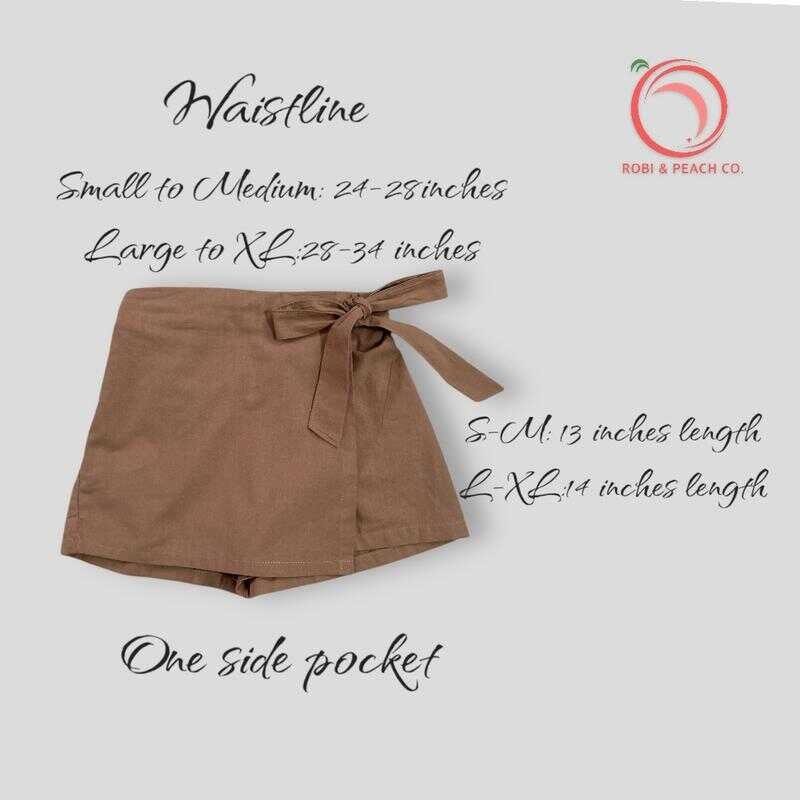 Robi & Peach Cotton Linen Skort Ribbon Tie With One Side Pocket Highwaiste Casual Womenswear Fa