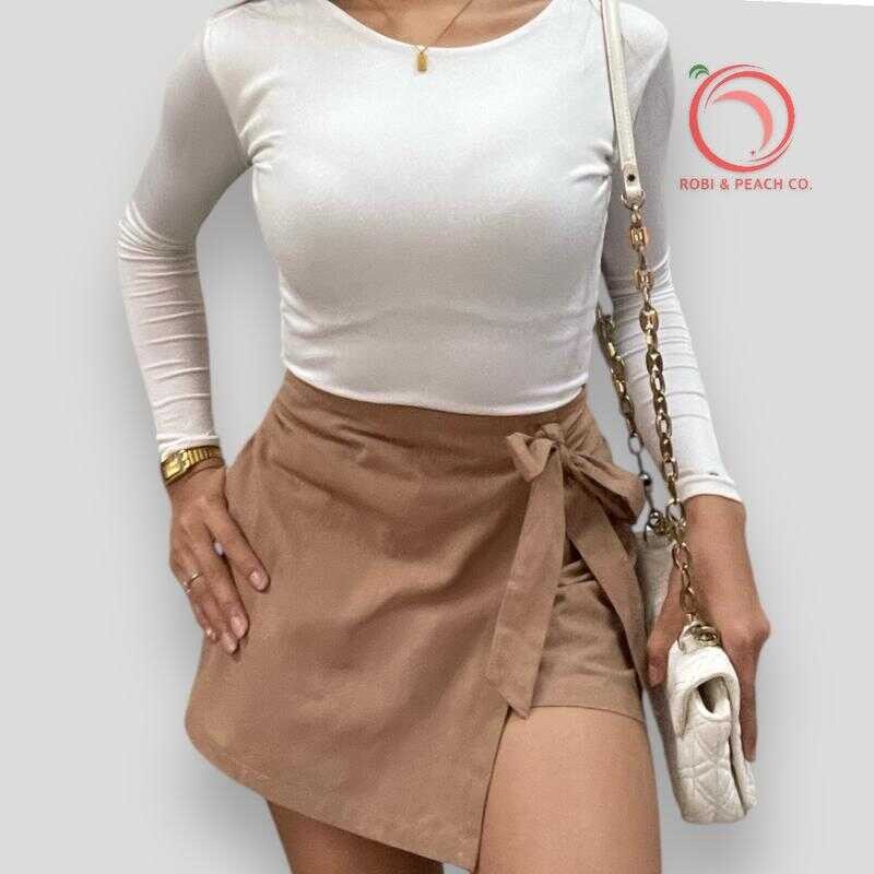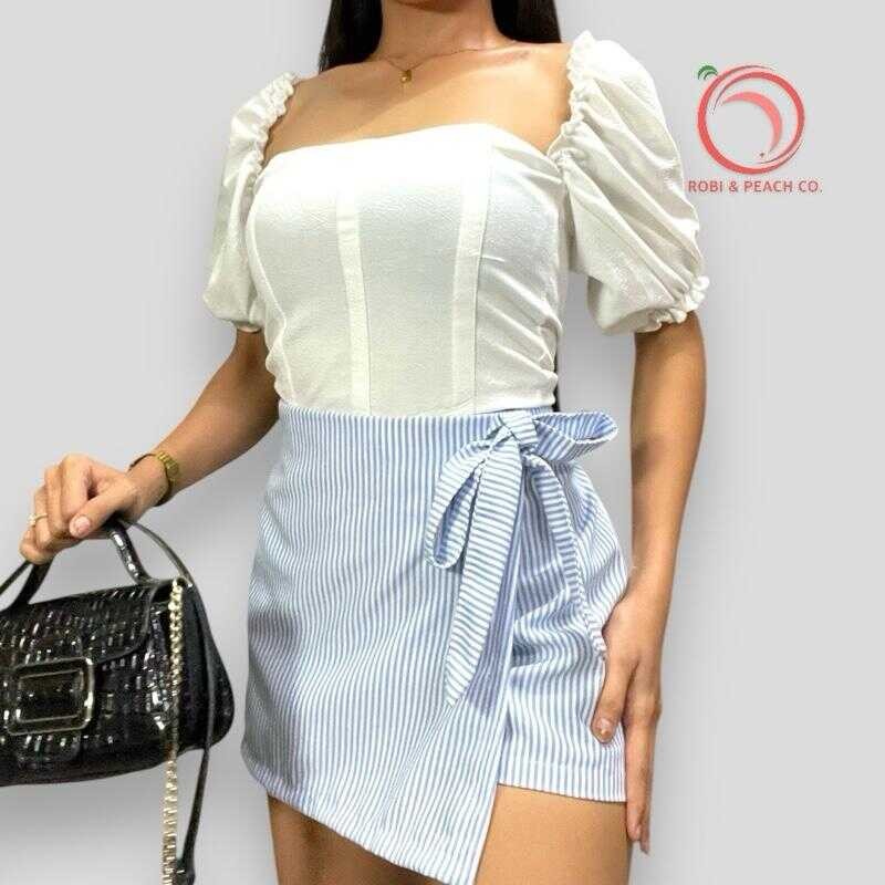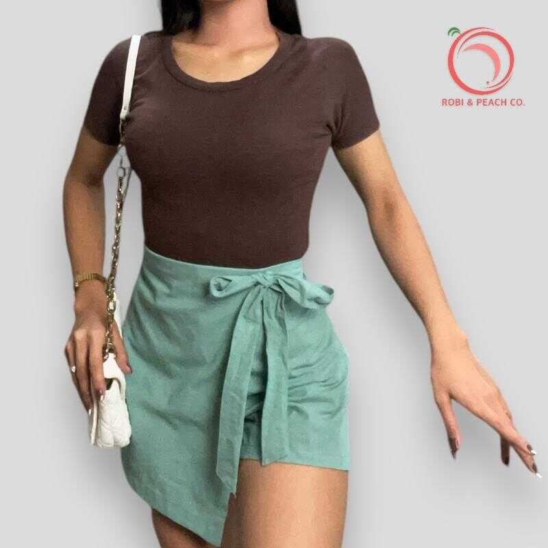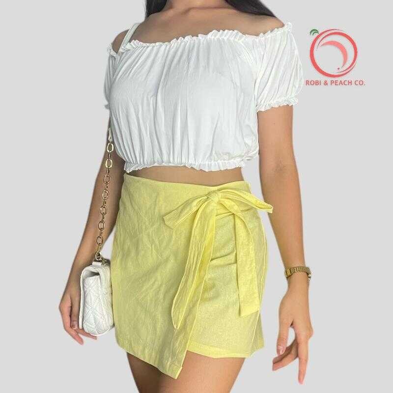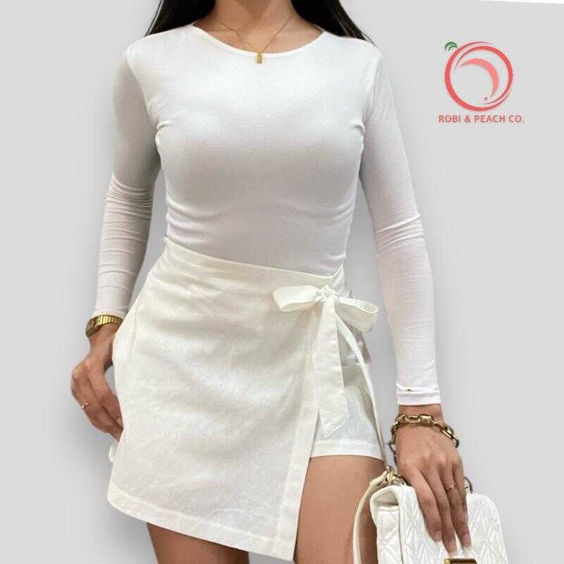 Robi & Peach Cotton Linen Skort Ribbon Tie With One Side Pocket Highwaiste Casual Womenswear Fa