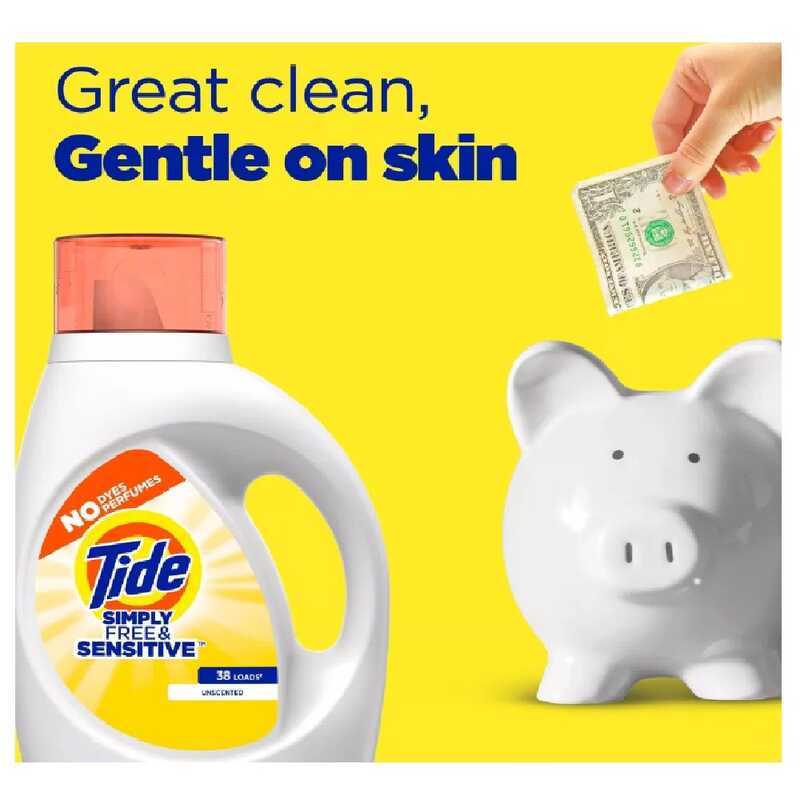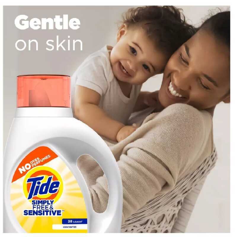 Tide Liquid Simple All In One Laundry Detergent - Free & Gentle 128 Fl Oz / 3.78 Liters 2C1