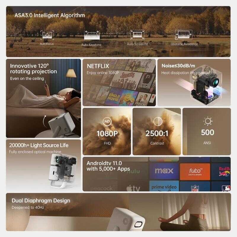 Wanbo New T2 Ultra Wanbo T2 Ultra Gimbal Projector Free 120° Angle 1080P Full HD Android 11.0 A