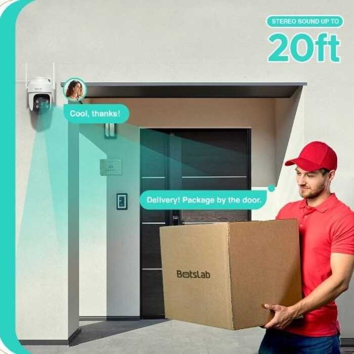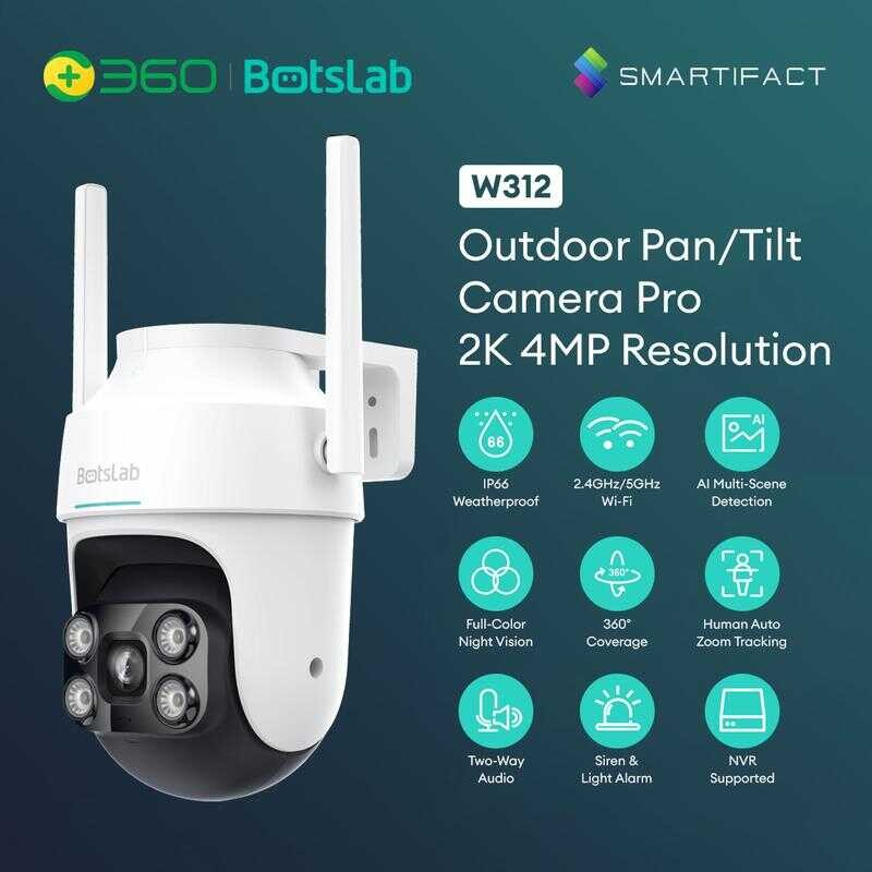 360 Botslab 4Mp High Resolution Outdoor Pan Tilt Camera Pro W312 Ip66 Weatherproof And Two-Way
