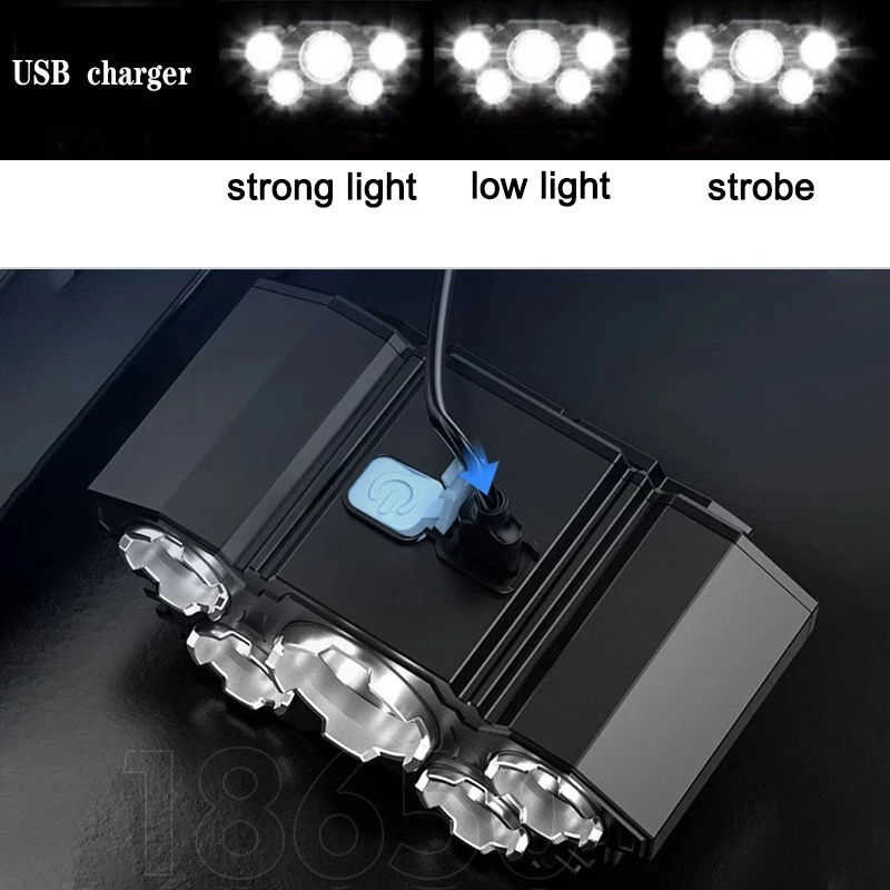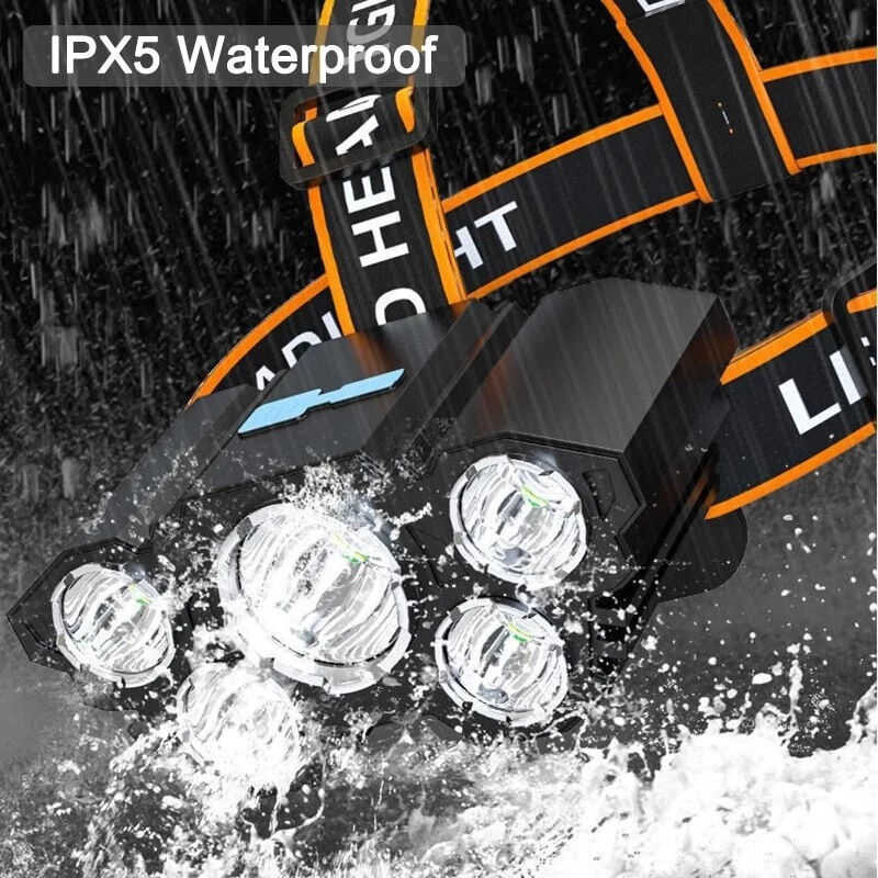 1Pc Super Brightest Powerful 5 LED Headlamp Rechargeable Headlamps Waterproof Headlights Head T
