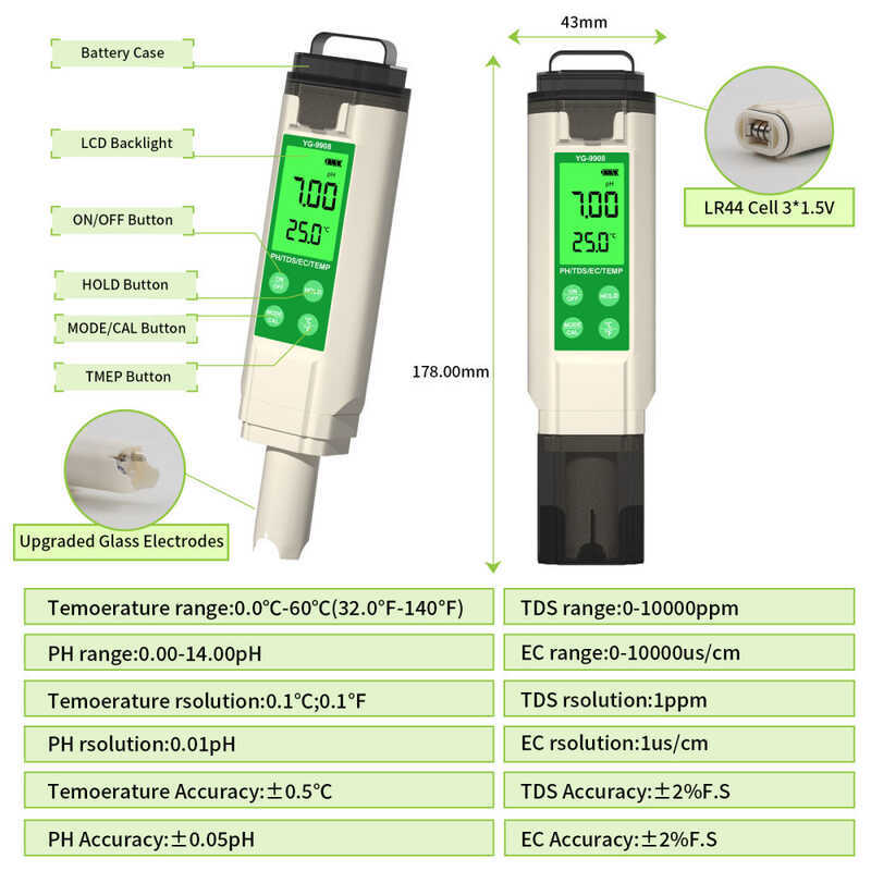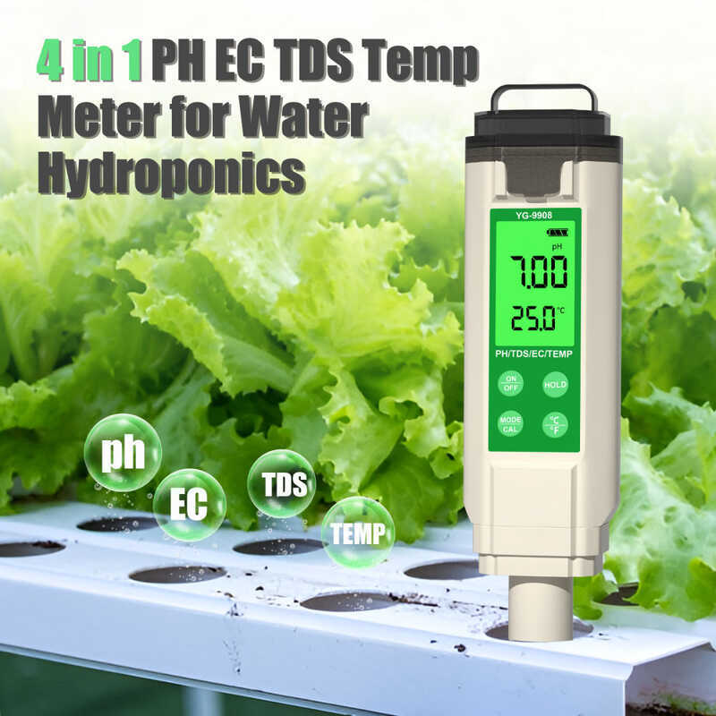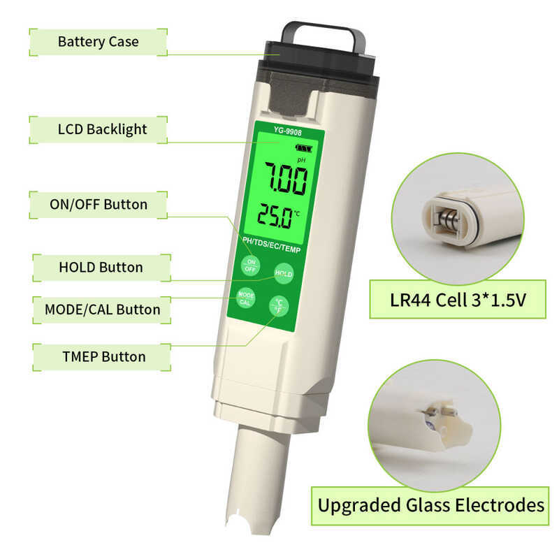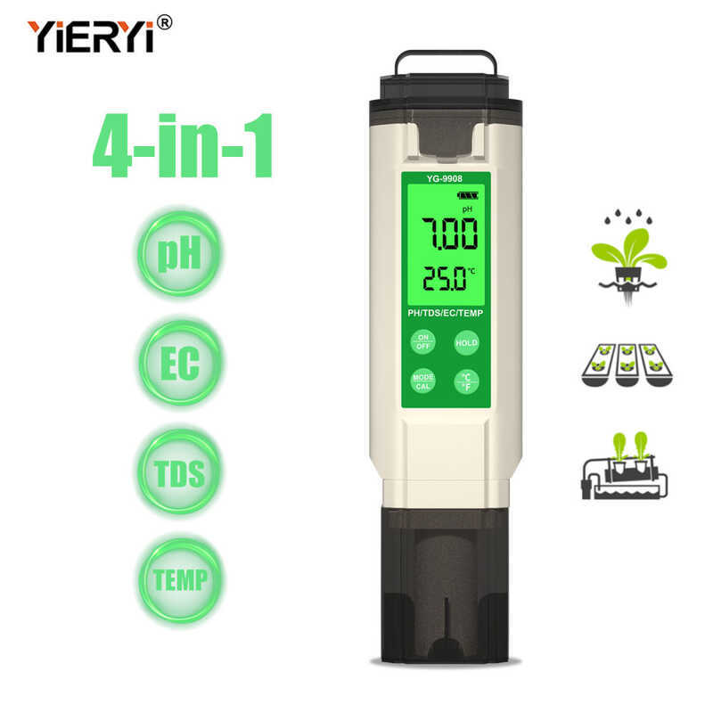 YIERYI High Precision Water Quality Tester 4-In-1 Ph/Ec/Tds/Temp Pen Backlit LCD Display Upgraded Gl