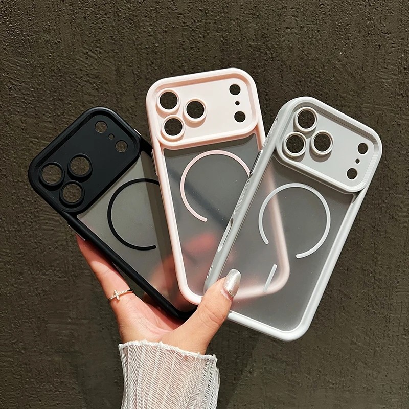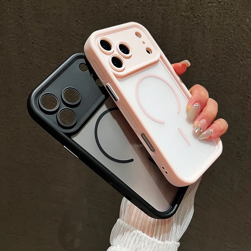 Luxury Magnetic Wireless Charge 2 IN 1 Matte Phone Case For iPhone 11 12 13 14 15 16 17 Pro Max Plus Air Bumper Cases Cover